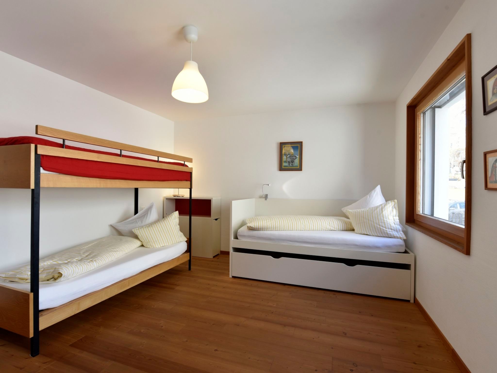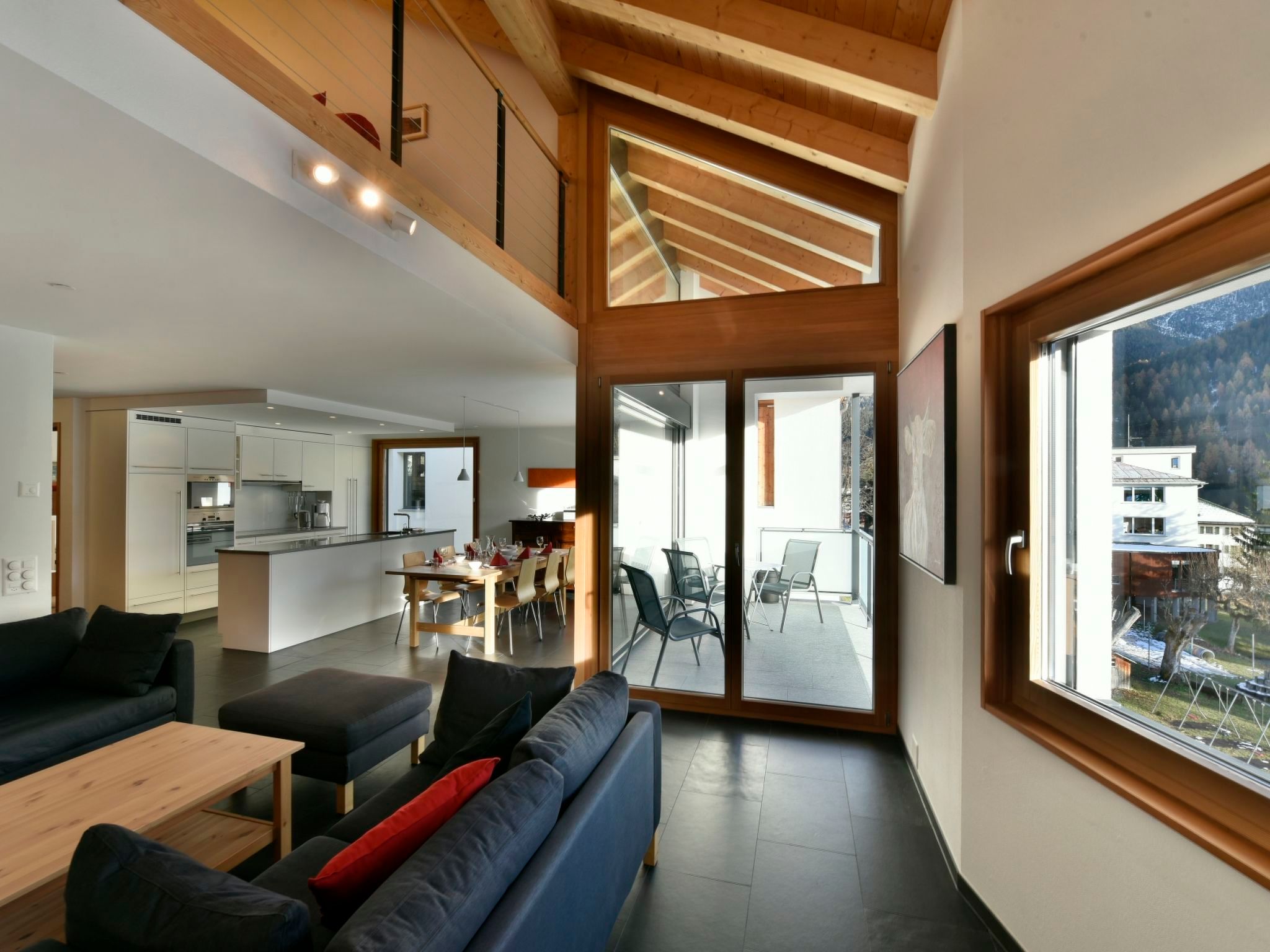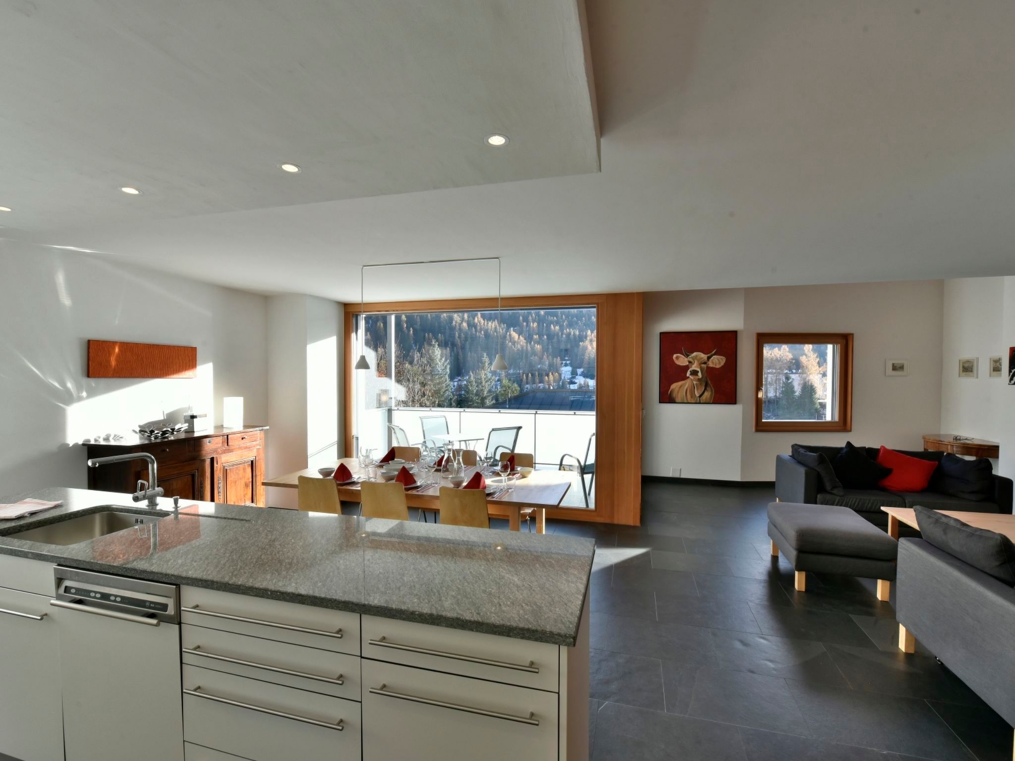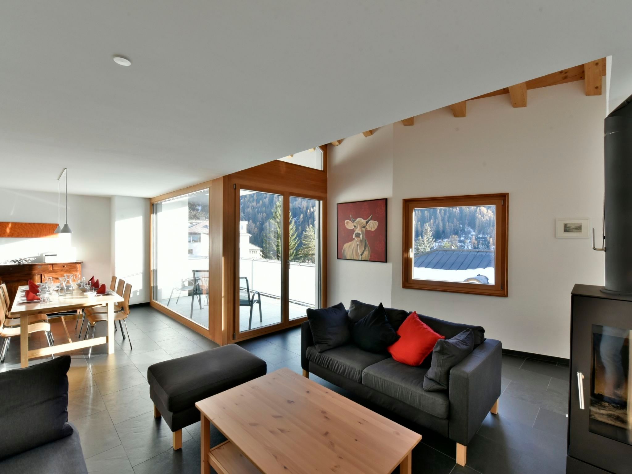128 m2. Weitere Angaben des Anbieters: Ferienwohnung CRAISTA 8 - im Urlaub den Komfort von zu Hause genießen! Hier finden Sie eine top moderne, helle und gut eingerichtete Dach Maisonette Ferienwohnung (128 m2). Die Wohnung verfügt über 1 offenes Wohn-und Esszimmer mit Schwedenofen, 1 komplett ausgestattete Küche mit allen Extras, Zugang auf Terrasse (Süd 8m2) mit wunderbarem Blick auf die Engadiner Dolomiten. 1 Schlafzimmer mit 2 Einzelbetten (Etagenbett, 1 Einzelbett), 1 Dusche mit WC/Lavabo. Im Obergeschoss, 1 Doppelschlafzimmer (1 Einzelmatratze),1 Doppelschlafzimmer (2 Einzelmatratzen), 1 grosses Bad mit Wanne/Dusche, WC und Doppellavabo. Offene Galerie mit Couch/Sofa, Satelliten/Kabel TV, Telefon, Internet-WLAN. Das alles erwartet Sie in der Ferienwohnung CRAISTA 8, wir freuen uns auf Sie! inkl. Bettwäsche, Frottéwäsche, Küchenwäsche, Endreinigung, WLAN, Satelliten/Kabel TV, Blue Tooth Radio, CD, Telefon, Strom, Heizung, Waschküche zur Mitbenützung, Skiraum, Veloraum, Lift, Parkplatz im Haus. Auf Wunsch/Anfrage vergünstigtes Vereina Billet.