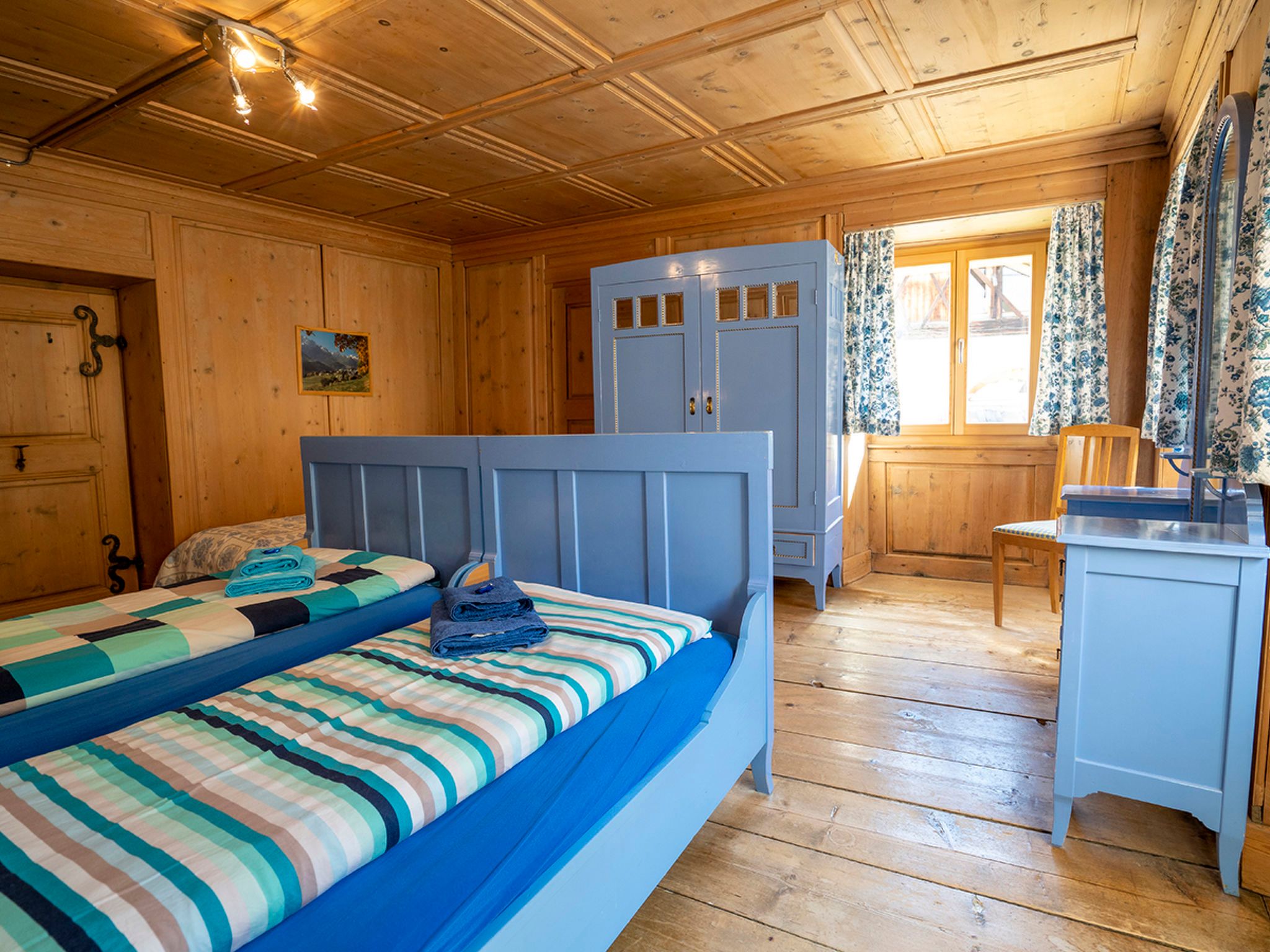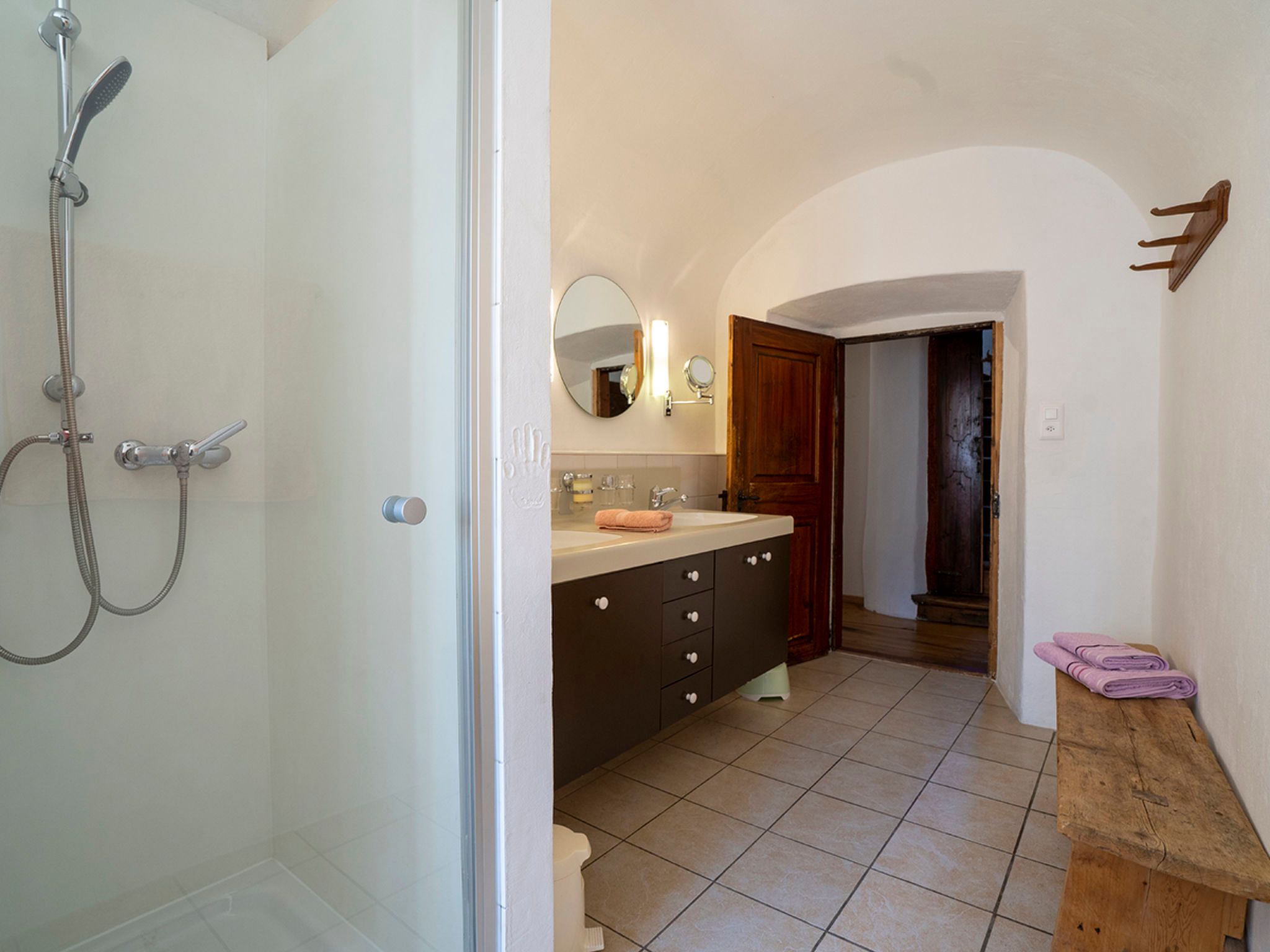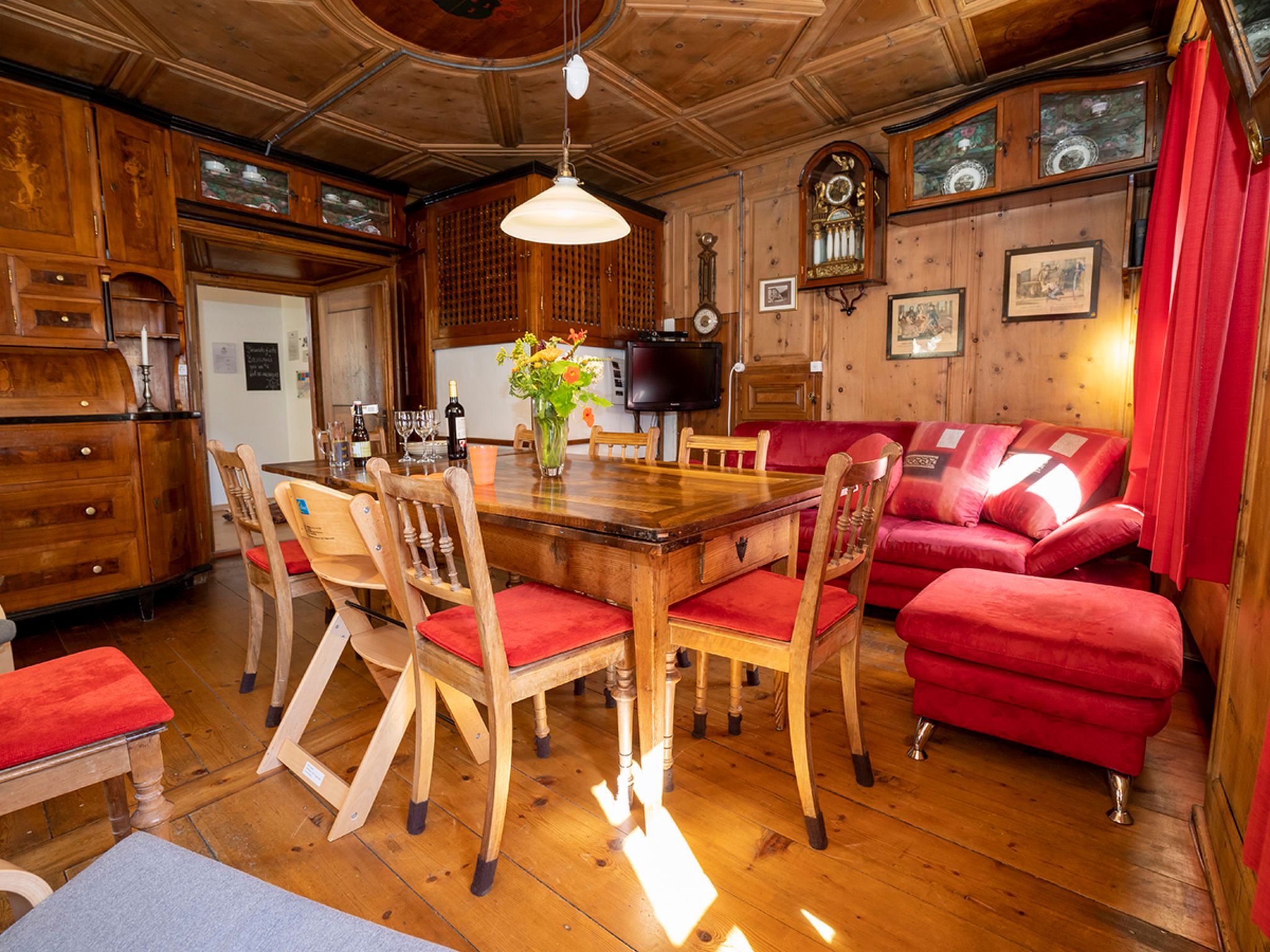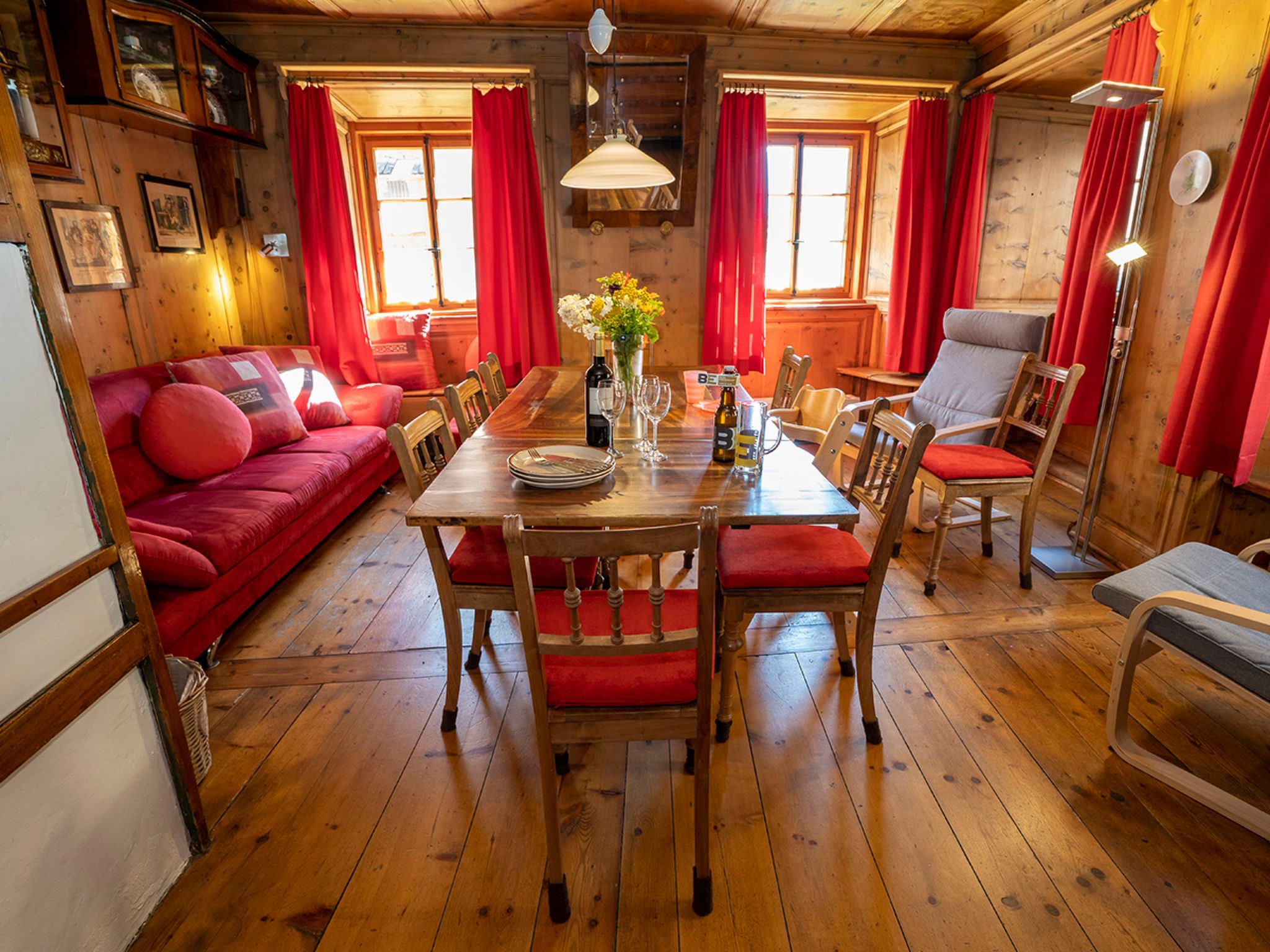 160 m2. Weitere Angaben des Anbieters: Grosse 8-Bett Ferienwohnung mit 4 DZ auf zwei Etagen (160 m2), sie ist äusserst komfortabel, gemütlich und praktisch eingerichtet. Sie bietet viel Raum und ist ideal, um mit einer befreundeten Familie Ferien zu geniessen oder zusammen mit Grosseltern oder weiteren Freunden. In der Küche können sich die Hausfrauen/-Männer so richtig ausleben. Sie ist sehr komfortabel ausgerüstet und manche Gäste machen Ihre Ferien bei uns zu richtigen Gourmetferien. Im EG befindet sich eines von vier Schlafzimmern. Zu den drei weiteren Doppelschlafzimmern gelangt man über die nostalgische Holztreppe im 1.Stock. So können sich die einen auch mal zurückziehen, während andere sich in dieser Zeit gemütlich in der geräumigen Engadiner Wohnstube am mächtigen Nussbaumtisch verweilen. Im EG liegt das eine Badezimmer welches noch eine Gewölbedecke ausweisst. Das zweite Badezimmer befindet sich im 1. Stock. Beide mit Fenster Ausblick nach Osten. Das alte Arven- und Nussbaumholz welches die Wohnstube und grosse Teile der Wohnung auskleidet, knistert und knarrt und verliert seinen ganz speziellen Duft nie. Die Wohnung wird fortwährend in Schwung gehalten. Unser Ziel ist es, Ihnen Wohlfühlferien zu bieten. 12 Jahre: pro Person und Nacht 5.00.