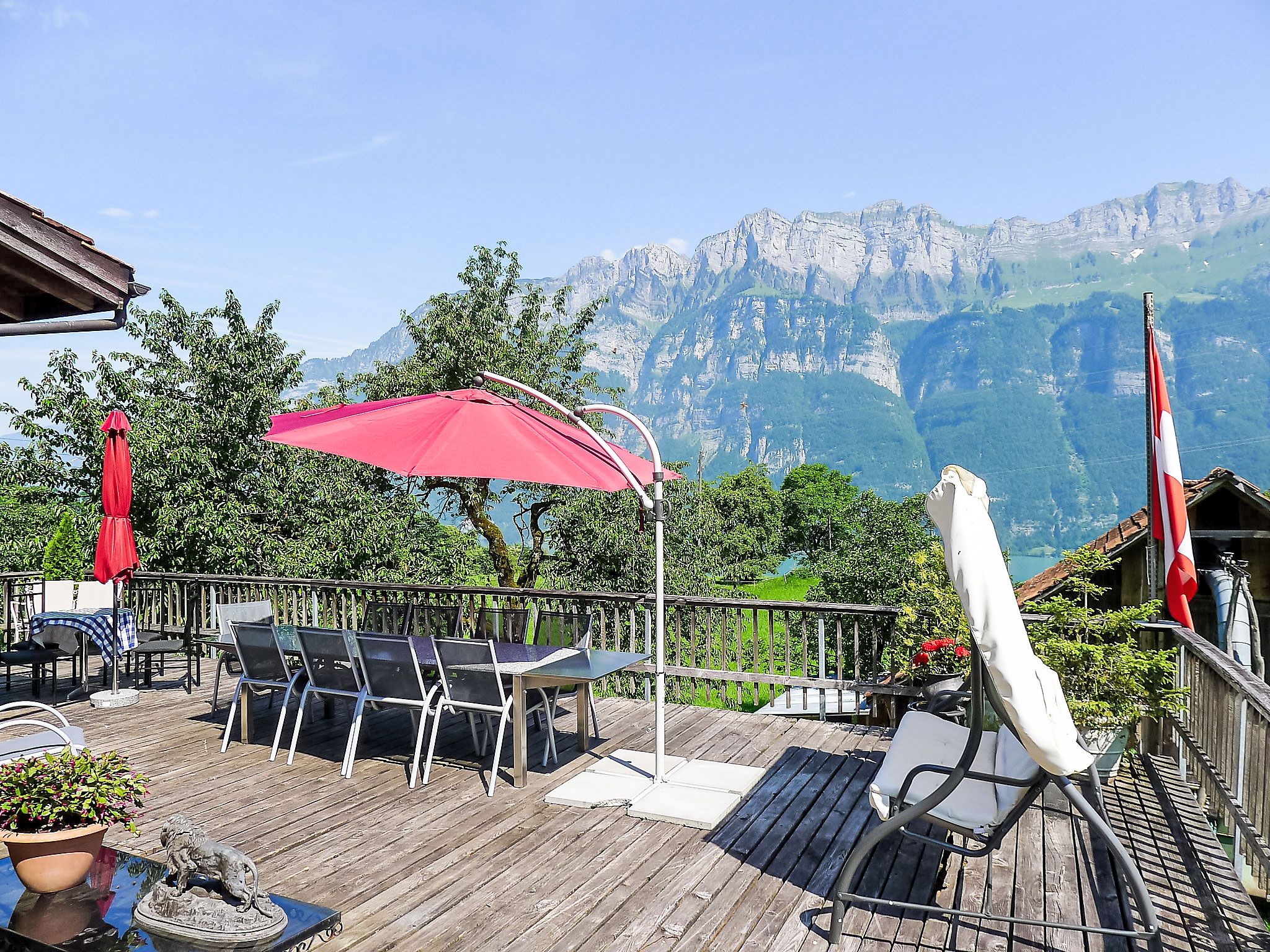 Oberterzen: Geniessen Sie Ihre Ferien umgeben von Kaninchen, Hühnern, Katzen und Hunde auf dem gemütlichen kinderfreundlicher Bauernhof Gubser, 630 m.ü.M., umgeben von Wiesen. Am Ortsrand, alleinstehende, ruhige, sonnige Lage am Hang, 3 km vom See, 300 m vom Skigebiet, im Grünen. Zur Mitbenutzung: Garten. Sitzplatz, Terrasse. Im Hause: Aufenthaltsraum, Tischtennis, Spielzimmer, Tischfussball, Sonnenterrasse, Skiraum, Zentralheizung. Zufahrt bis zum Haus. Im Winter bitte Schneeketten mitbringen. Treppenweg (15 Stufen) bis zum Haus. Parkplatz beim Haus. Lebensmittelgeschäft, Restaurant 200 m, Bushaltestelle 200 m, Bahnstation Unterterzen 3 km, Freibad 3 km, Badesee Walensee 3 km. Bergeisenbahn, Skisportanlagen, Skischule 300 m. Bekannte Skigebiete sind gut erreichbar: Flumserberg 300 m. Bekannte Seen in der Umgebung sind gut erreichbar: Walensee 3 km. Wandergebiete: Flumserberg. Bitte beachten: Bei guter Schneelage Zufahrt mit den Skiern bis zum Haus. Der Besitzer wohnt auf dem gleichen Grundstück. Tiere in der Umgebung.