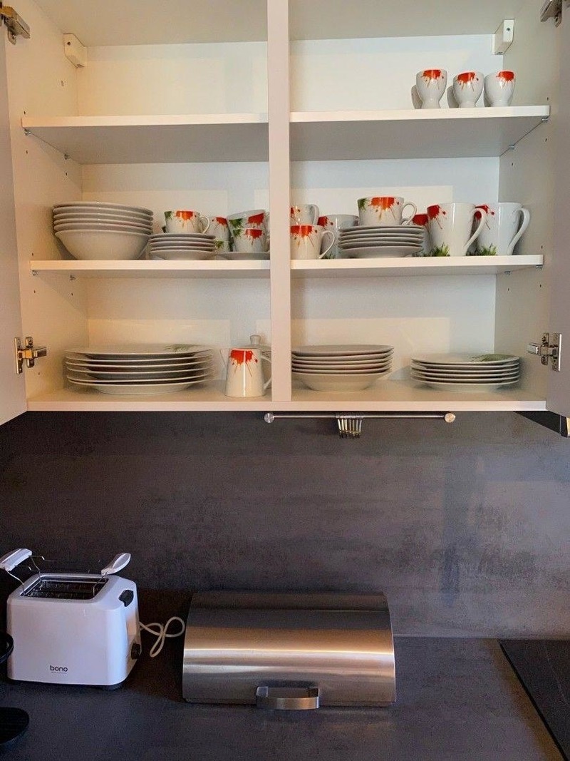 • Geschirrtücher, Spülmittel, Basics wie Salz/Pfeffer/Zucker für den Erstbedarf vorhanden.