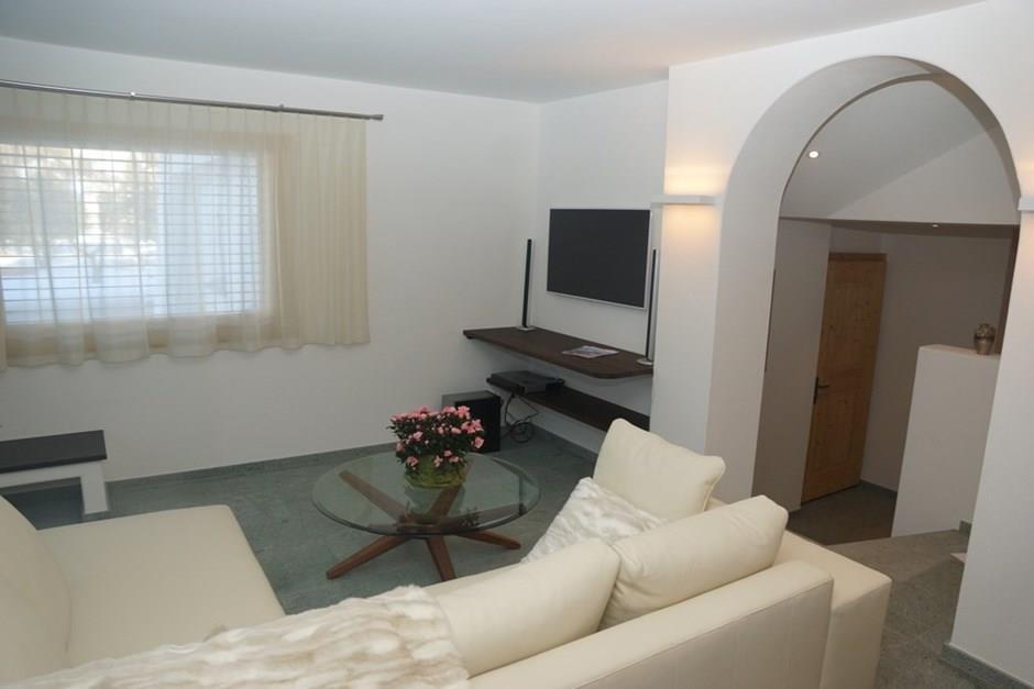 Sehr grosszügige 4 ½ Zimmerwohnung (ca. 98m2) im Erdgeschoss, Zweifamilienhaus, Baujahr 2013, Gartensitzplatz, Südwest, Autoabstellplatz; Mitbenützung der Waschmaschine; Küche mit Backofen, 4-Plattenglaskeramikherd, Kühlschrank mit Tiefgefrierfach, Geschirrspülmaschine; Bad/WC, Dusche/WC; 2 Schlafzimmer Doppelbetten; 1 Schlafzimmer mit 2 Einzelbetten; Wohnzimmer mit Polstergruppe, Esstisch; Bettwäsche, Frottewäsche, Küchentücher, Duvet nordisch; TV, WLAN; Abfallsäcke blau; Haustiere nicht erlaubt; Nichtraucher-Wohnung!