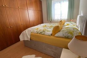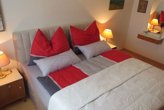 Dieses überaus geräumige Apartment verfügt über ein Schlafzimmer, ein sehr großes Wohnzimmer mit Einbaumöbeln und Doppelcouch, ein Kabinett (Extra-Zimmer), eine große gemütliche Holz-Küche mit Eckbank, ein Bad (Wanne), ein WC (getrennt) und eine große Diele/Vorzimmer. Bewährtes und gediegene, traditionelle Tischlerarbeit wurden mit Komfort und Neuem für liebe Gäste kombiniert.