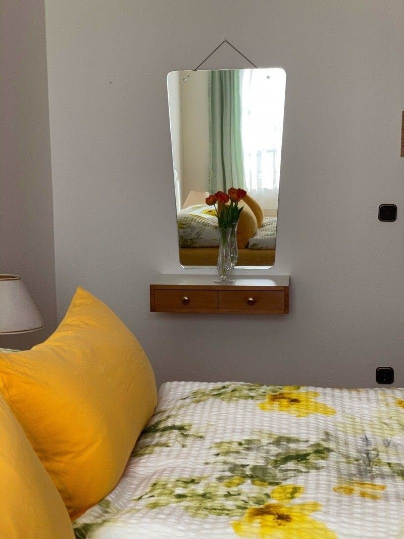 • Nachtkästchen, Leselampen. Retro-Schminktisch mit Spiegel.