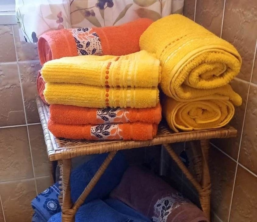 • Flauschige Handtücher und Duschtücher (50x100 cm & 70x140 cm / 4 pro Person).