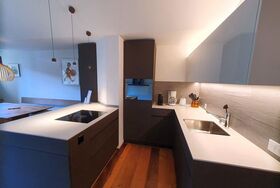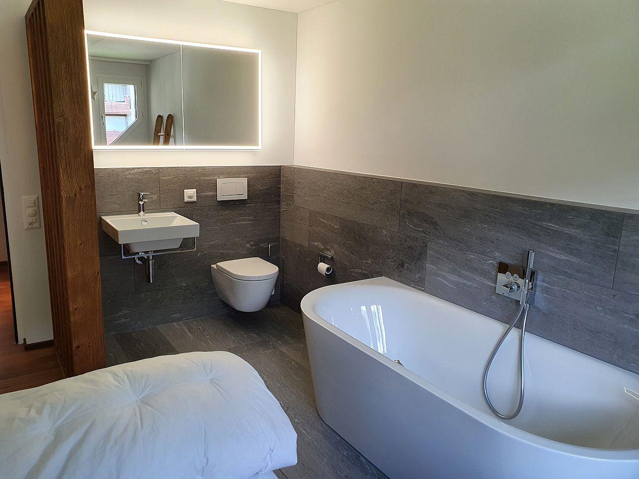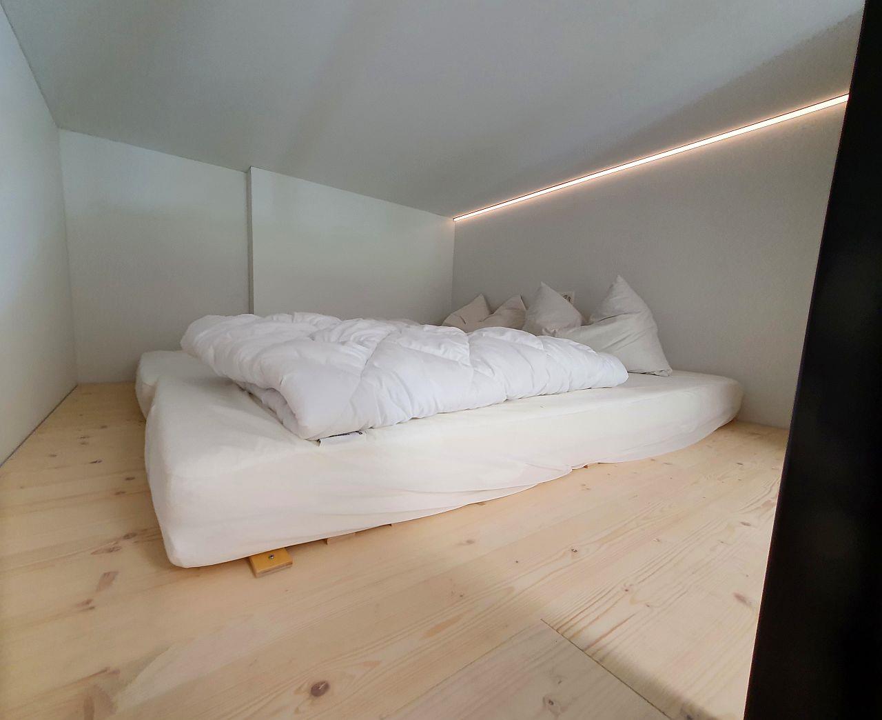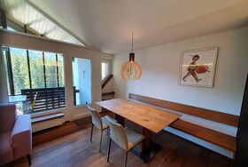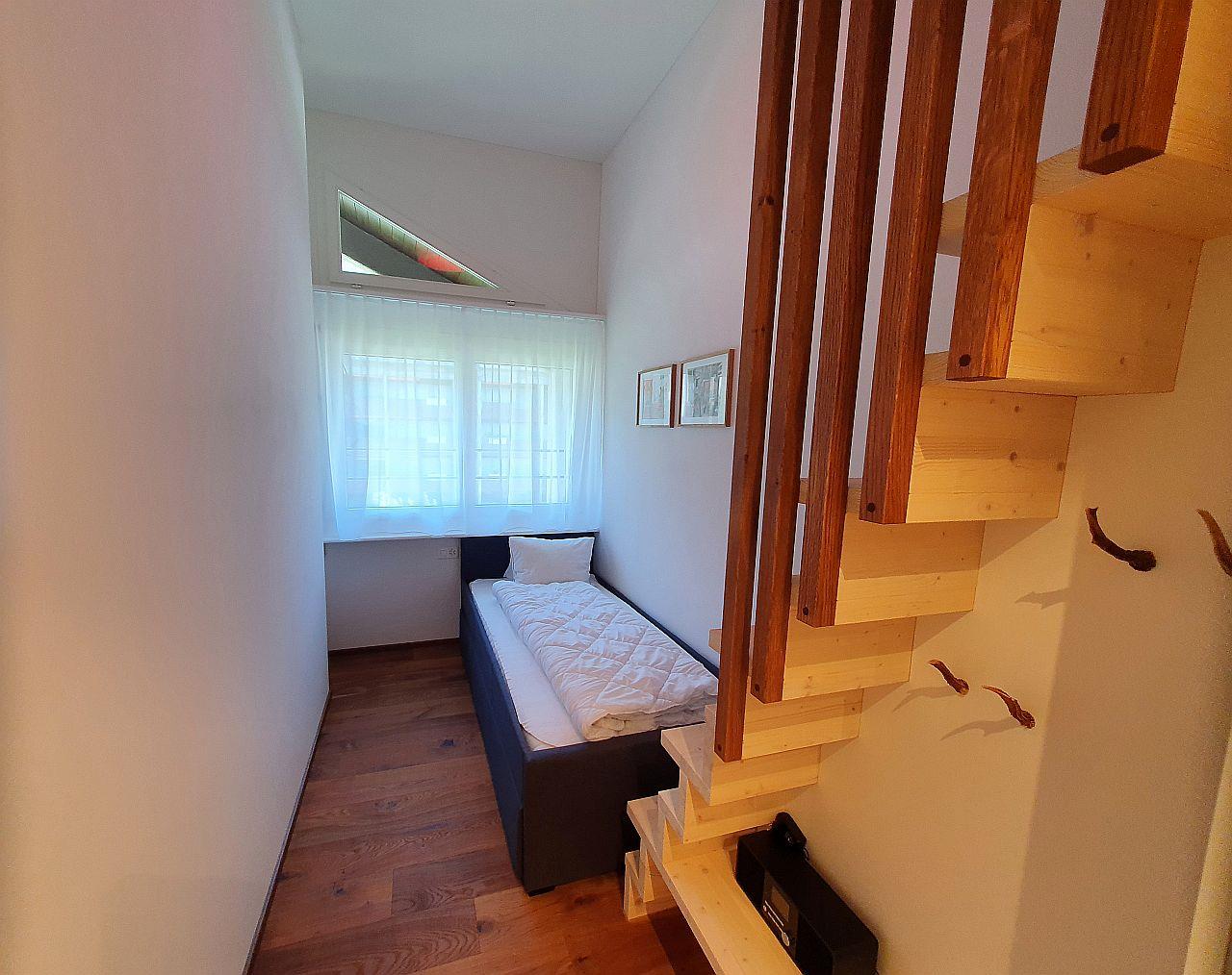 3- Zimmer-Dachwohnung (ca. 67 m²) im Haus Valatscha. Die Wohnung verfügt über ein grosses Wohnzimmer mit integrierter Einbauküche (Geschirrspüler, Backofen, Kühlschrank). Balkon, TV und W-Lan. Ein Schlafzimmer mit Doppelbett und integriertem Badezimmer. Ein Schlafzimmer mit einem Einzelbett im unteren Teil und Doppelbett auf der Galerie. Dusche/WC.