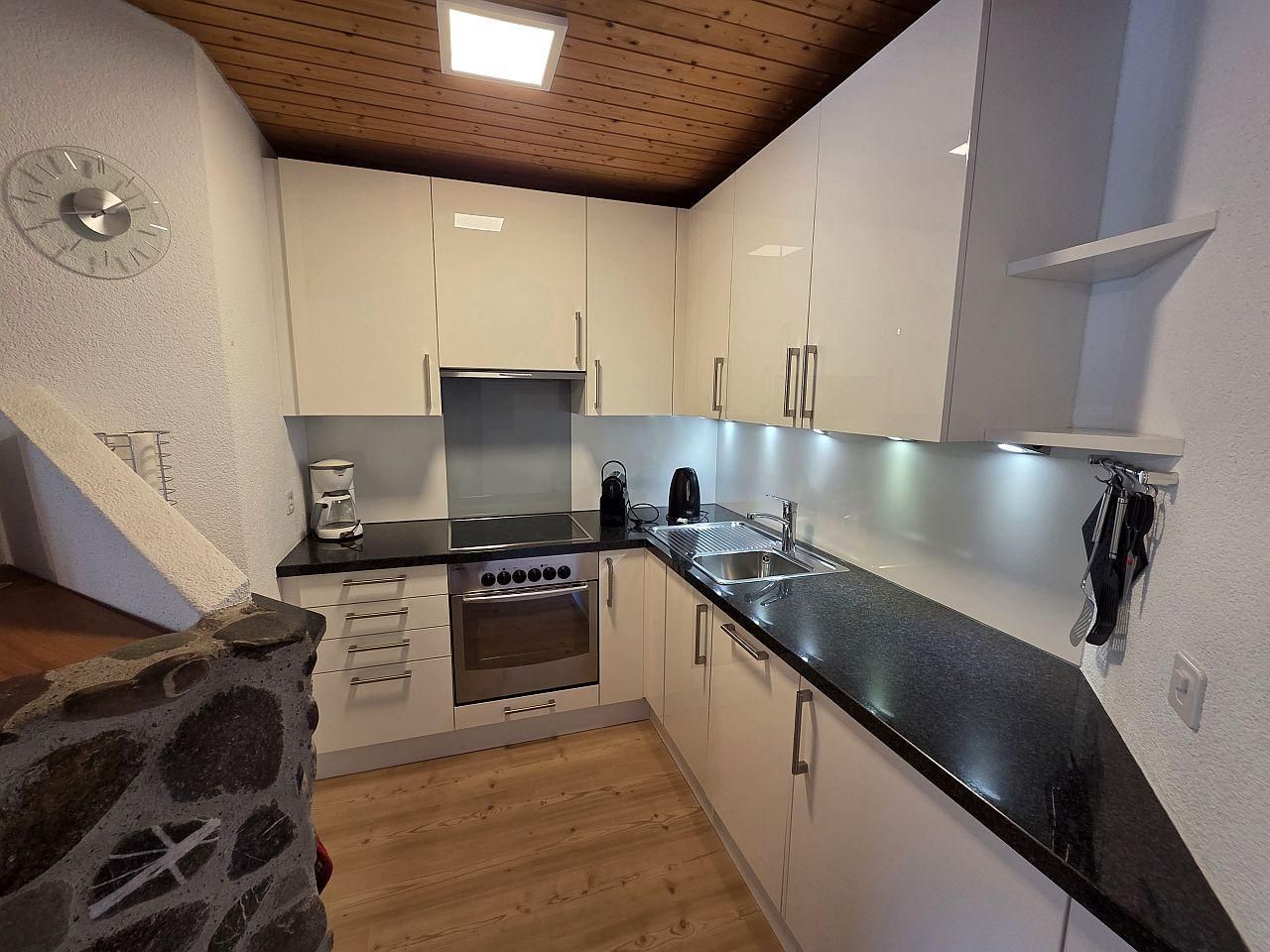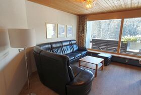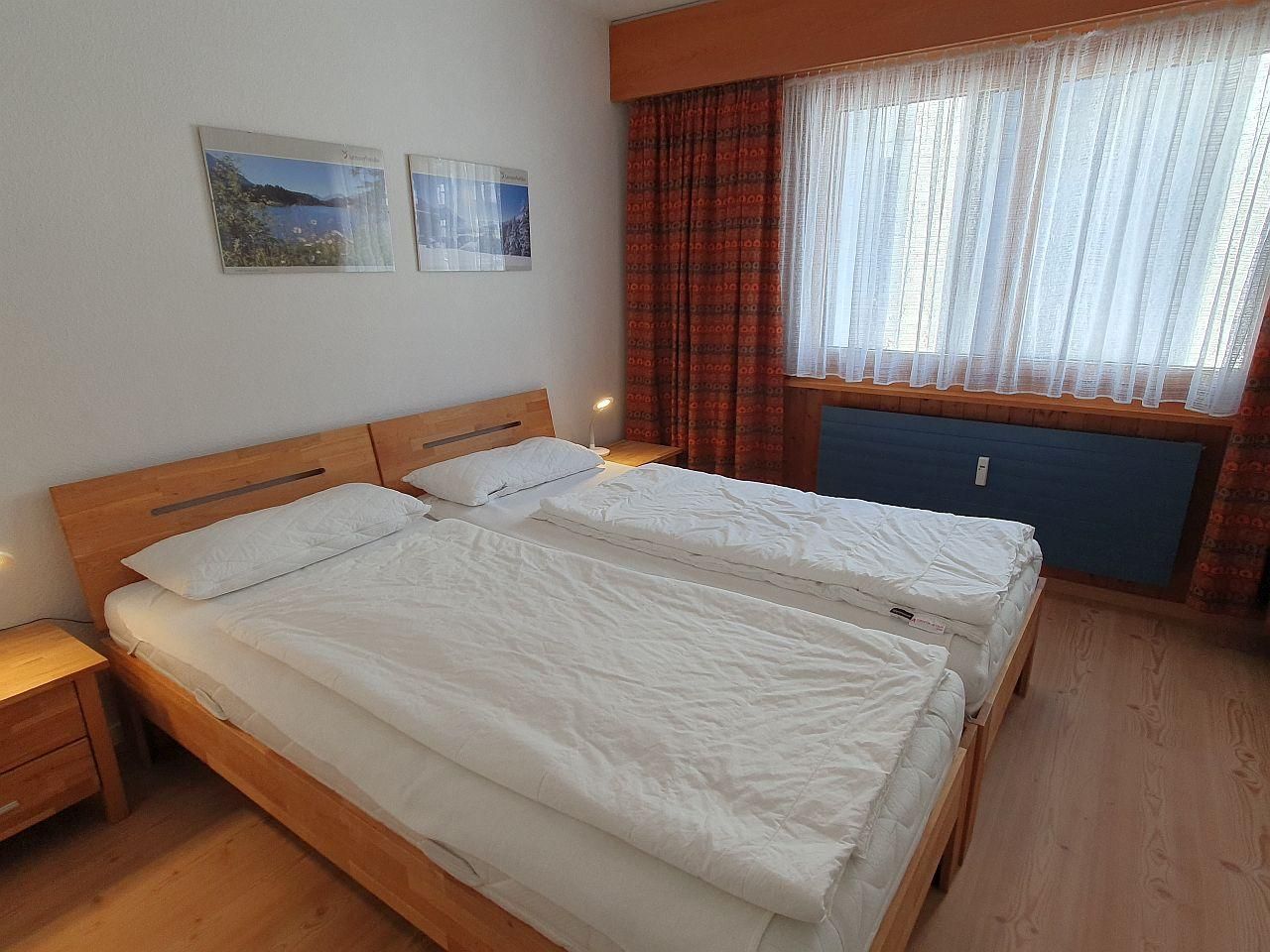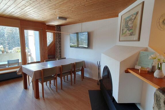 4,5- Zimmer-Wohnung (ca. 88 m²) im Haus Valatscha. Die Wohnung verfügt über ein grosses Wohnzimmer mit integrierter Einbauküche (Geschirrspüler, Backofen, Kühlschrank). Offener Kamin, Balkon, TV und W-Lan. Drei Schlafzimmer, zwei mit je einem Doppelbett und eines mit einem Kajütenbett. Bad/WC, Dusche, separates WC.
