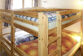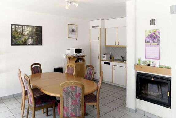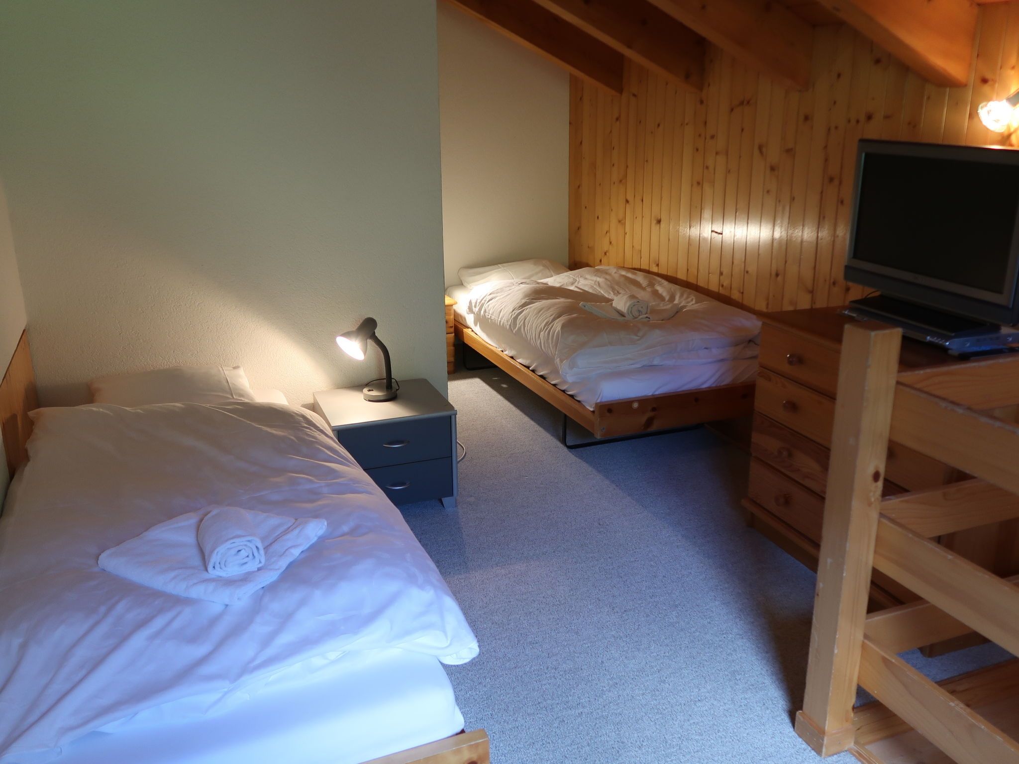 Mont-Fort D1, 4-Zimmer-Wohnung 102 m2 auf 3 Stockwerken. Zweckmässig und schön eingerichtet: Wohn-/Esszimmer mit offenem Kamin und Kabel-TV. Ausgang zur Terrasse. Offene Küche (Backofen, Geschirrspüler, 4 Glaskeramikplatten, Toaster, Wasserkocher, Mikrowelle, elektrische Kaffeemaschine, Kapseln für die Kaffeemaschine (Delizio) extra, Racletteofen, Fondue Set (Chinoise, Käse)). Dusche/WC. Obergeschoss: 1 Zimmer mit 2 Betten (80 cm, Länge 200 cm). 1 Zimmer mit 2 x 2 Etagenbetten (90 cm, Länge 200 cm). Bad/WC. E-Heizung. Dachgeschoss: 1 abgeschrägtes, offenes Zimmer mit 2 Betten (80 cm, Länge 200 cm). Terrasse, Nordlage und Ostlage. Terrassenmöbel. Sicht auf die Berge. Zur Verfügung: Haartrockner. Internet (Wireless LAN, gratis). Bitte beachten: Nichtraucher-Unterkunft, kein Parkplatz.