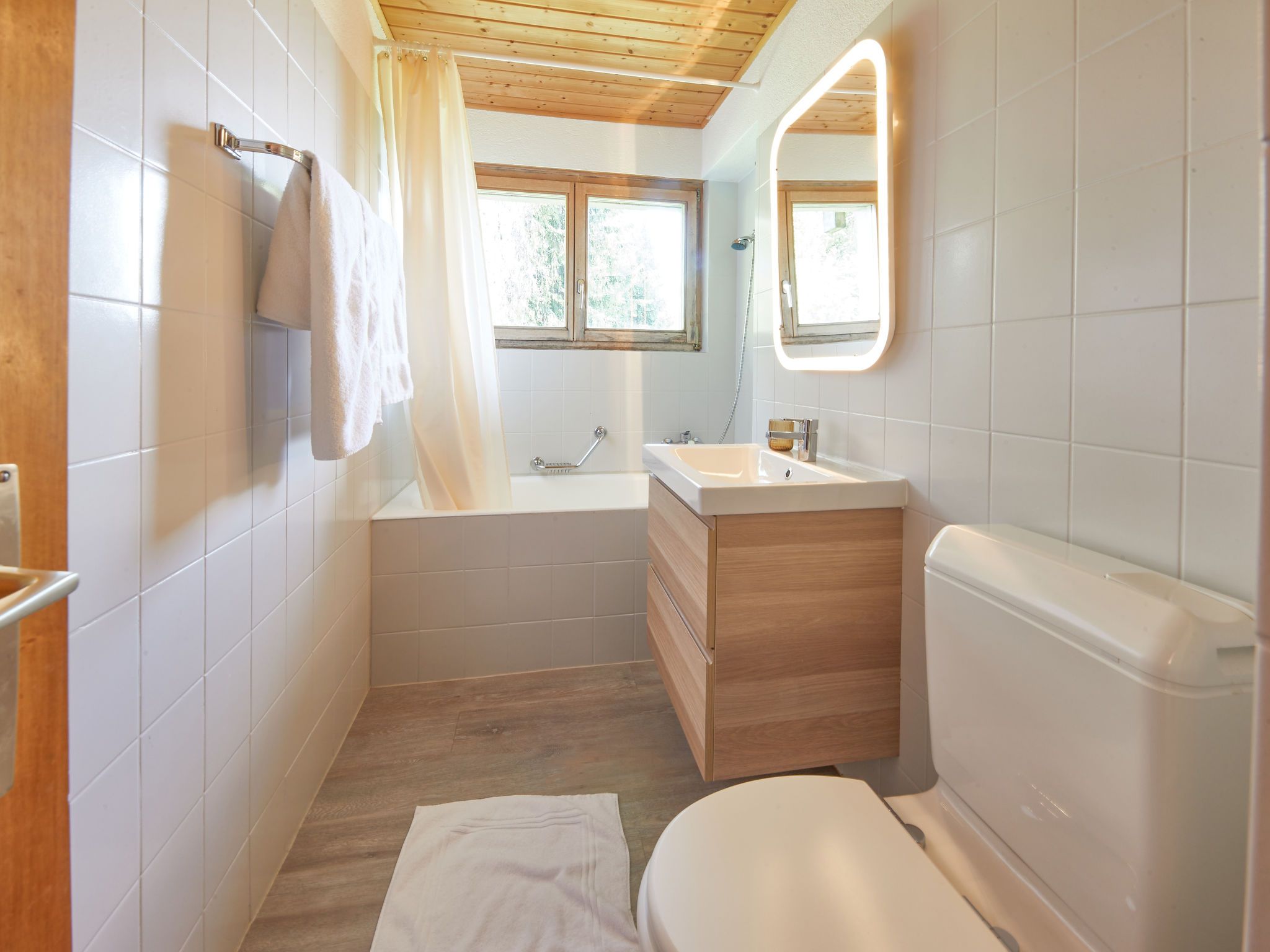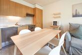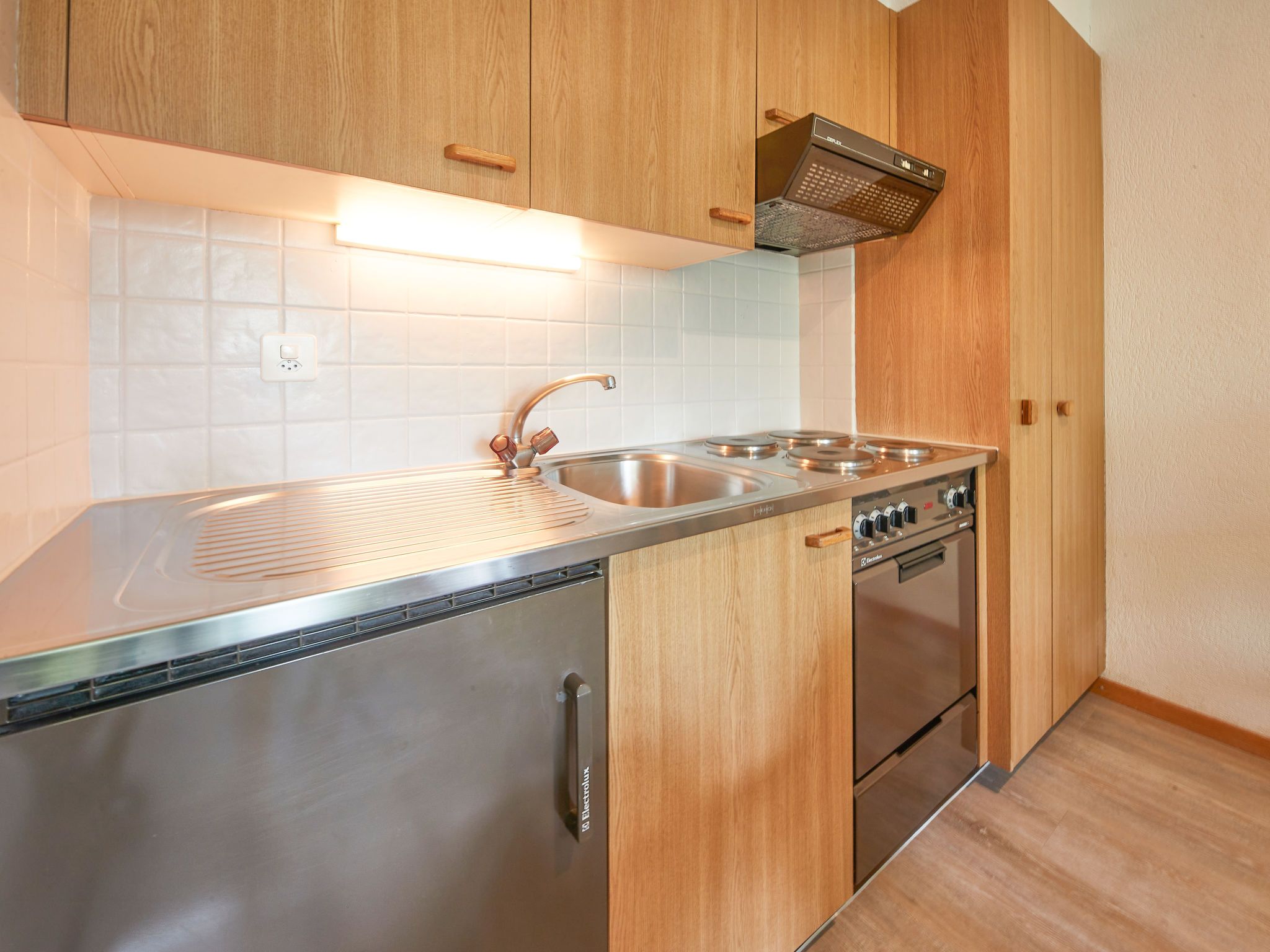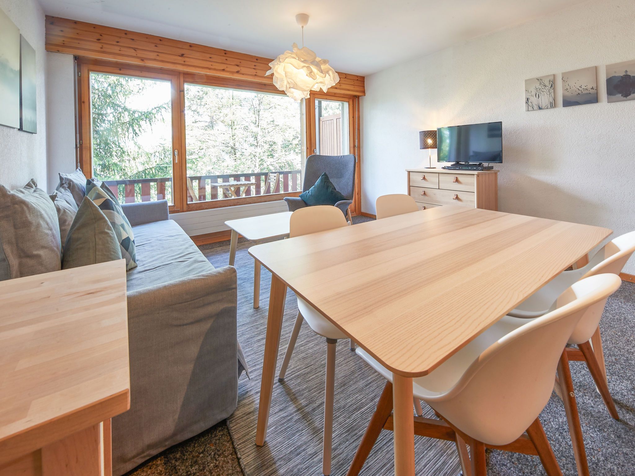 Hameau D004, 2-Zimmer-Wohnung 49 m2. Komfortabel und geschmackvoll eingerichtet: Wohn-/Esszimmer mit 1 Diwanbett und Kabel-TV. Ausgang zum Balkon. 1 Zimmer mit 2 Betten (90 cm, Länge 200 cm). Offene Küche (4 Kochplatten, Backofen, Mikrowelle, elektrische Kaffeemaschine). Bad/WC. Balkon. Balkonmöbel. Schöne Sicht auf die Landschaft. Bitte beachten: Nichtraucher-Unterkunft.