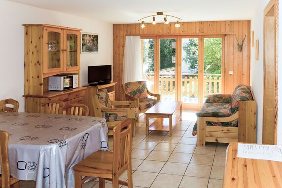 Sérandes 9, 3-Zimmer-Wohnung 60 m2 im 2. Stock. Hell, gemütlich eingerichtet: Wohn-/Esszimmer mit 1 Doppeldiwanbett, Esstisch, Sat-TV und Internationale TV-Sender. Ausgang zum Balkon. 1 Zimmer mit 1 Ausziehbett (2 Pers.). 1 Zimmer mit 1 x 2 Etagenbetten, 1 Doppelbett. Offene Küche (Backofen, Geschirrspüler, 4 Glaskeramikplatten, Mikrowelle, elektrische Kaffeemaschine, Fondue Set (Käse)). Dusche/WC. Balkon. Balkonmöbel. Schöne Sicht auf die Berge und die Landschaft. Zur Verfügung: Internet (Wireless LAN). Bitte beachten: Nichtraucher-Unterkunft. Maximal 1 Haustier/Hund erlaubt.