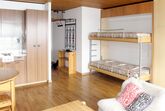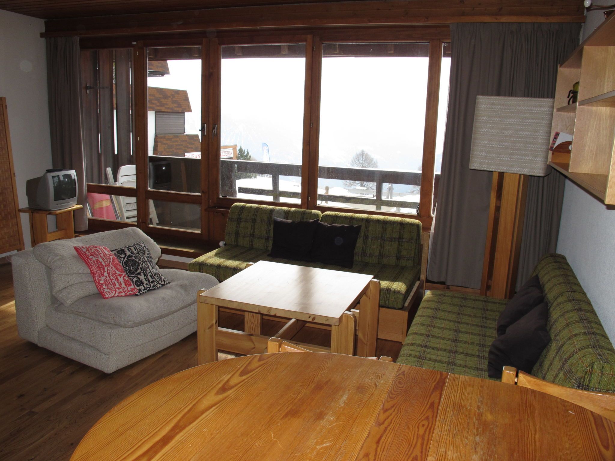 Résidence Dixence, 1-Zimmer-Studio 33 m2 im 3. Stock. Komfortabel und geschmackvoll eingerichtet: Wohn-/Schlafzimmer mit 1 x 2 Etagenbetten (90 cm, Länge 190 cm), 1 Schlafmöglichkeit (2 x 80 cm, Länge 190 cm), Kabel-TV. Ausgang zum Balkon. Offene Küche (2 Kochplatten, Mini-Backofen). Bad/WC. Balkon. Balkonmöbel. Zur Verfügung: Internet (Wireless LAN, extra). Maximal 1 Haustier/Hund erlaubt.