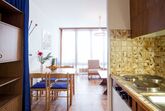 Résidence Greppon, 1-Zimmer-Studio 29 m2 im 3. Stock. Zweckmässig und komfortabel eingerichtet: Wohn-/Schlafzimmer mit 1 Diwanbett (120 cm, Länge 190 cm), 1 Doppeldiwanbett (140 cm, Länge 200 cm), 1 x 1 Etagenbetten (80 cm, Länge 190 cm), Kabel-TV. Ausgang zum Balkon. Offene Küche (4 Glaskeramikplatten, Mikrowelle). Bad/WC. Balkon, Ostlage. Balkonmöbel. Sehr schöne Sicht auf die Berge und die Landschaft. Zur Verfügung: Internet (Wireless LAN, extra). Bitte beachten: Nichtraucher-Unterkunft. Maximal 1 Haustier/Hund erlaubt.