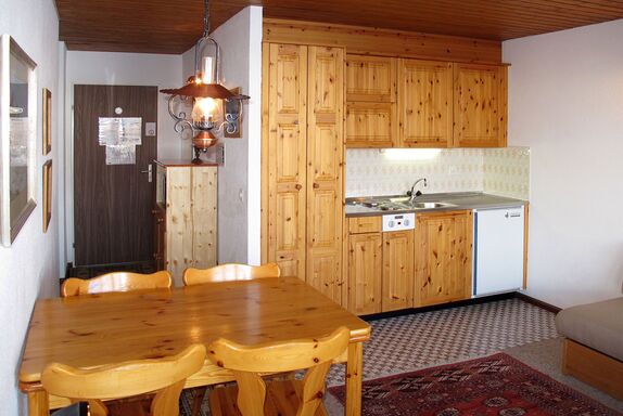 Résidence Dixence, 2-Zimmer-Wohnung 40 m2 im 2. Stock. Zweckmässig und komfortabel eingerichtet: Wohn-/Esszimmer mit 2 Diwanbetten und Kabel-TV. Ausgang zum Balkon. 1 Zimmer mit 1 Bett und 1 Doppelbett. Offene Küche (2 Kochplatten). Bad/WC. Balkon, Westlage. Balkonmöbel. Schöne Sicht auf die Skipiste und die Landschaft. Zur Verfügung: Internet (Wireless LAN). Bitte beachten: Nichtraucher-Unterkunft. Maximal 1 Haustier/Hund erlaubt.