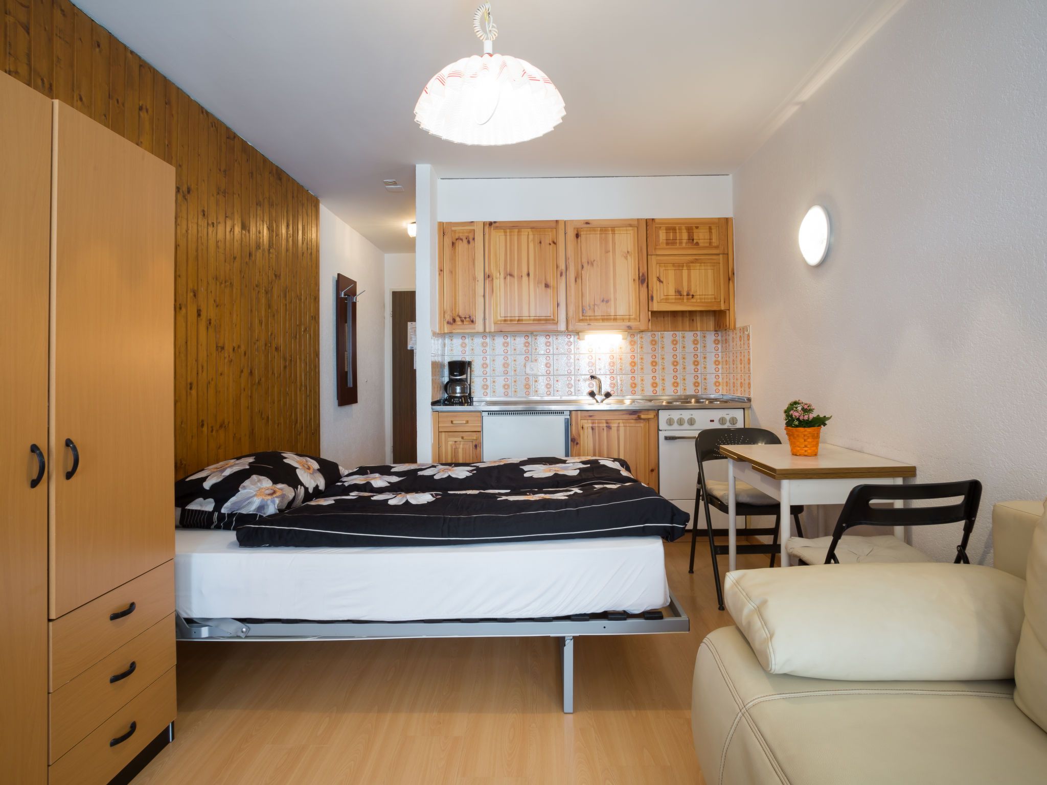 Velan 115, 1-Zimmer-Studio 25 m2 im 1. Stock. Geschmackvoll und gemütlich eingerichtet: Wohn-/Schlafzimmer mit 1 Doppeldiwanbett, 3 Wandklappbetten und TV. Ausgang zum Balkon. Offene Küche (3 Kochplatten, Backofen, elektrische Kaffeemaschine). Bad/WC. Balkon, Ostlage. Balkonmöbel. Zur Verfügung: Internet (WLAN, extra). Bitte beachten: Nichtraucher-Unterkunft. Maximal 1 Haustier/Hund erlaubt.