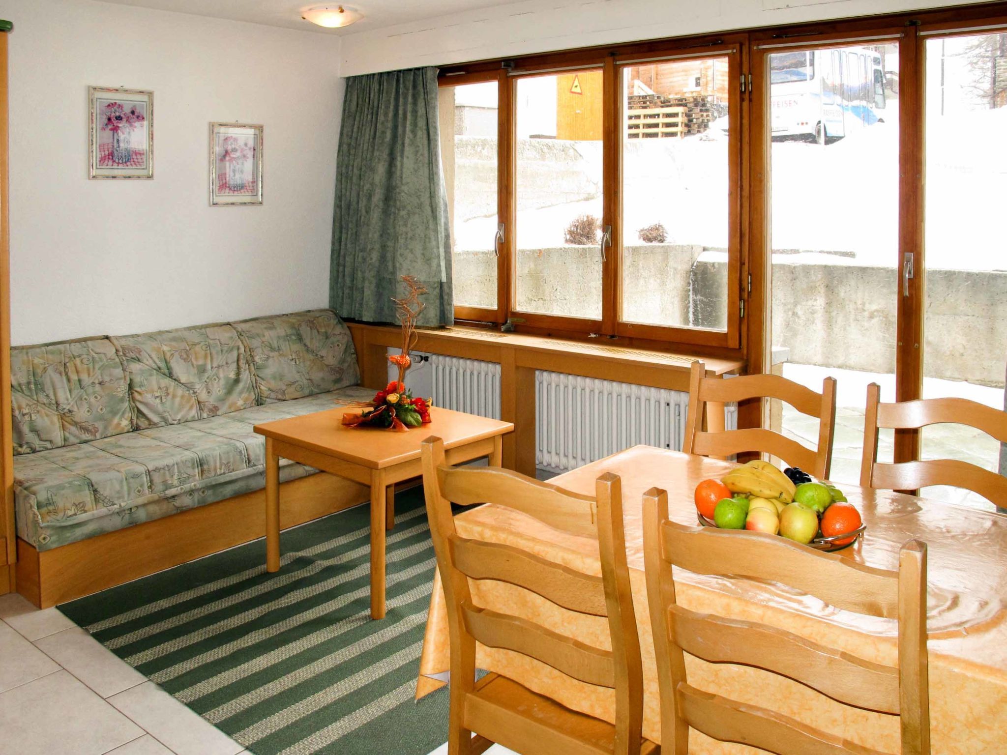 3-Zimmer-Wohnung 48 m2, im Erdgeschoss, Südlage. Gemütlich eingerichtet: Wohn-/Schlafzimmer mit 1 Diwanbett, Esstisch und Sat-TV (Flachbildschirm), Radio und DVD. Ausgang zur Terrasse. 1 Doppelzimmer. 1 Doppelzimmer mit Dusche/WC. Kochnische (3 Kochplatten, Backofen, Wasserkocher, Mikrowelle, elektrische Kaffeemaschine, Fondue Set (Käse)) mit Esstisch. Dusche/WC. Ölheizung. Terrasse. Terrassenmöbel, Liegestühle (2). Schöne Sicht auf die Berge und die Ortschaft. Zur Verfügung: Kinderhochstuhl. Internet (Wireless LAN, gratis). Bitte beachten: Nichtraucher-Unterkunft.