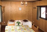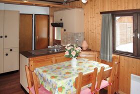 2-Zimmer-Chalet 30 m2. Rustikal und gemütlich eingerichtet: Wohn-/Schlafzimmer mit 1 Bett, 1 Ausziehbett, Esstisch und Kabel-TV (Flachbildschirm). 1 Zimmer mit 2 Betten. Offene Küche (3 Kochplatten, Backofen, Wasserkocher, elektrische Kaffeemaschine, Fondue Set (Käse)). Dusche, sep. WC. E-Heizung. Teppichboden. Gartensitzplatz. Terrassenmöbel. Parkplatz (1 Auto) beim Haus. Maximal 1 Haustier/Hund erlaubt.