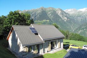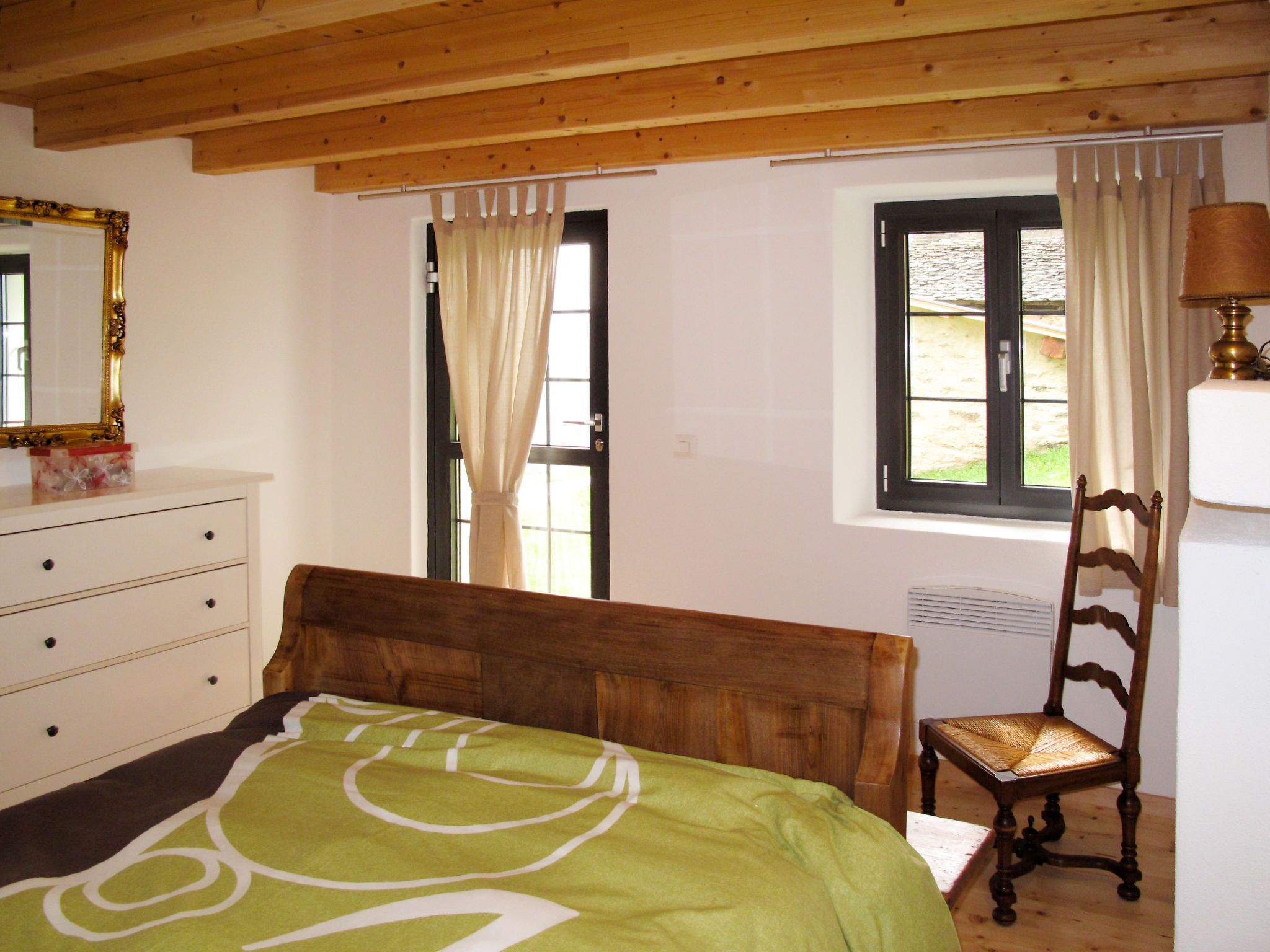 Rustico De Leoni, 4-Zimmer-Haus 125 m2 auf 3 Stockwerken, Südlage. Renoviert im Jahre 2012, schön und gemütlich eingerichtet: offenes Wohn-/Esszimmer mit Esstisch, Sat-TV, Internationale TV-Sender und Holzofen. Ausgang zum Garten. 1 Zimmer mit 1 franz. Bett. Ausgang zum Garten. Offene Küche (Backofen, Gasherd, 4 Flammen). Dusche/WC. Unteres Geschoss: Gepäckraum. Ausgang zum Garten. Dusche/WC. Holzheizung. Solarstrom. Obergeschoss: 1 abgeschrägtes Zimmer mit 1 Bett und 1 Doppelbett. 1 abgeschrägtes Zimmer mit 1 Bett und 1 Doppelbett. Holzdielenboden, Natursteinboden. Komfortable Einrichtung im Landhausstil. Terrassenmöbel, Gartengrill (mobil), Liegestühle (4), Sitzplatz. Schöne Panoramasicht auf die Berge und das Tal. Bitte beachten: Nichtraucher-Haus. Maximal 2 Haustiere/Hunde erlaubt. NL-
