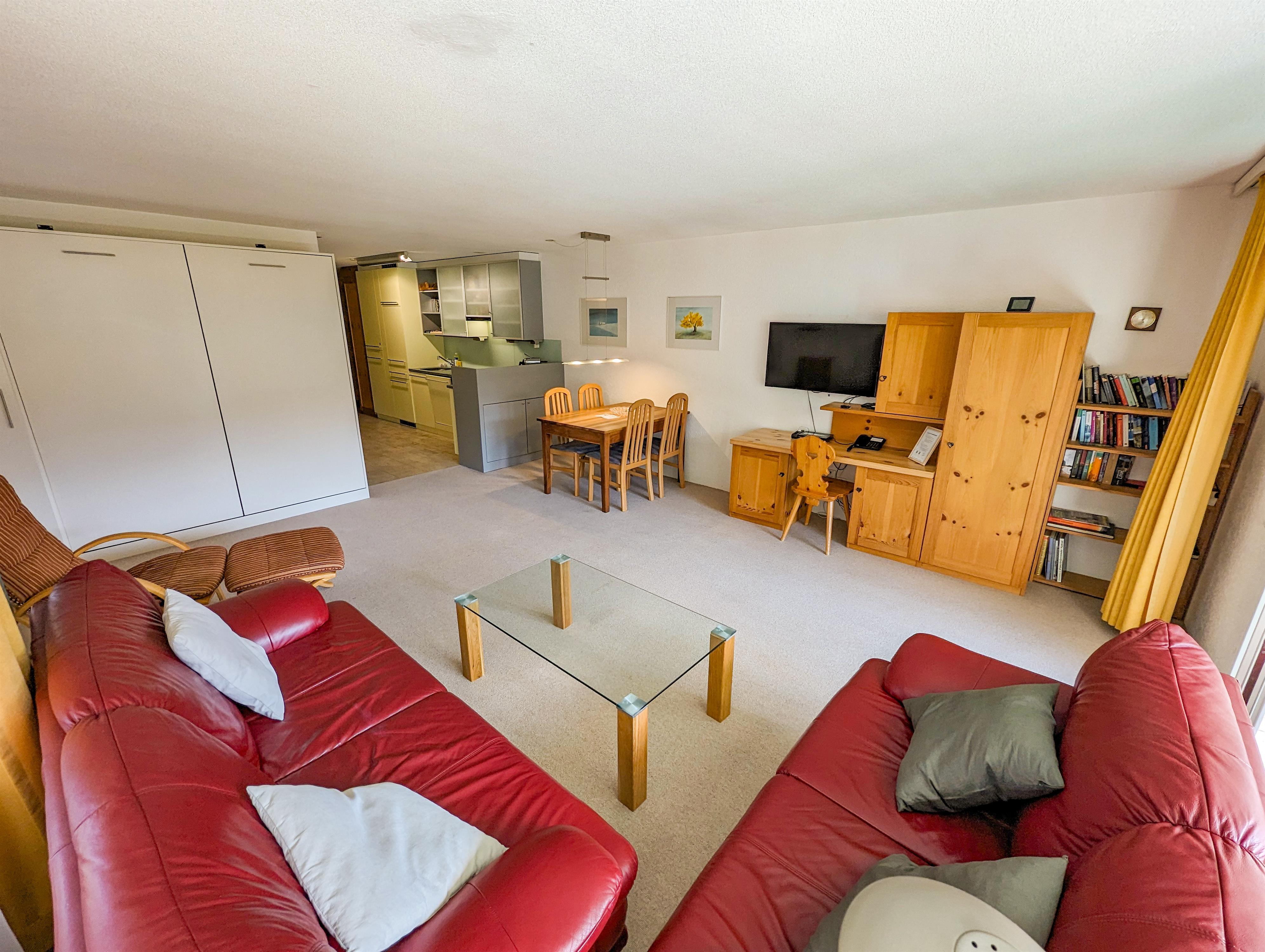 Die geräumige 2-Zimmer-Wohnung befindet sich im 7. Stock des Rothornblick Gebäudes an ruhiger Lage und von viel Natur umgeben. Der Balkon bietet einen herrlichen Bergblick. Während den Öffnungszeiten des direkt nebenan gelegenen Hotel Robinson Club Arosa, können der Swimming Pool und das Fitness kostenfrei mitbenutzt sowie im Winter vom Skibus profitiert werden.