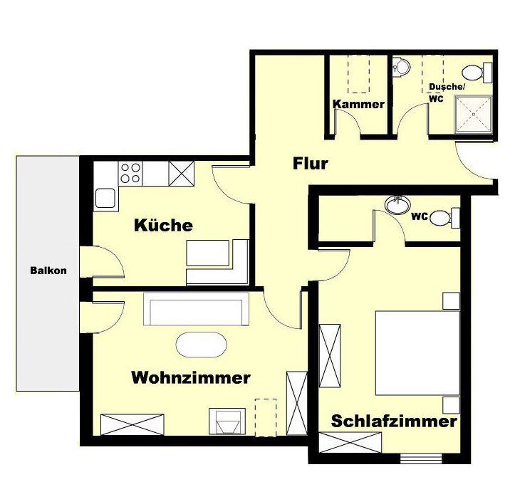 Ferienwohnung Schneeberg ca. 55 m² für 2-4 Personen Balkon; Wohnzimmer mit Sitzgruppe und zusätzlicher Schlafcouch, Sat-TV, DVD-Player u. CD-Radio; Schlafzimmer mit Doppelbett und einem Einzelbett, komplett ausgestattete Küche m. E-Herd, Backofen und Gefrierfach; 1x Dusche/WC; 1x WC; Abstellraum