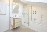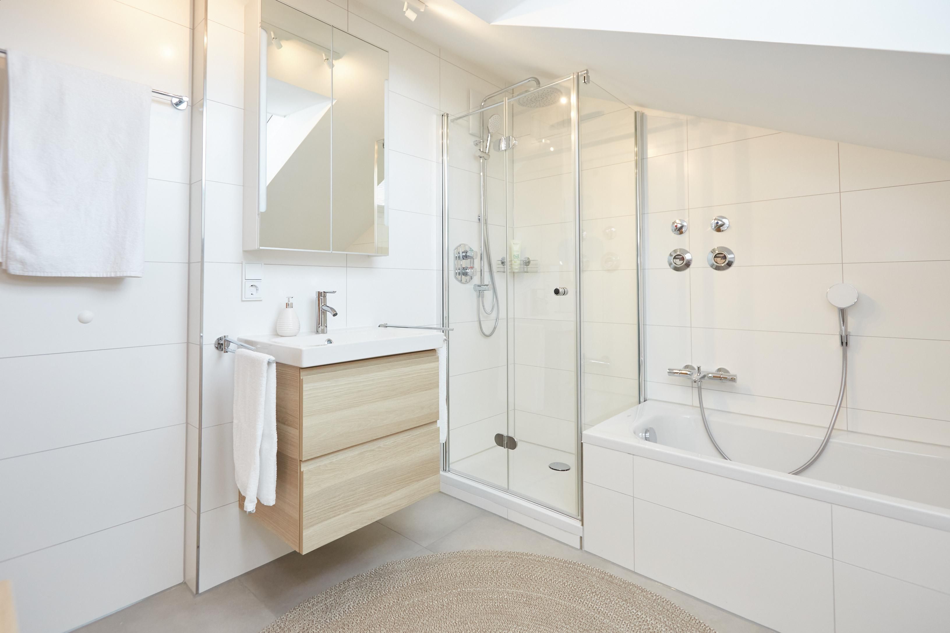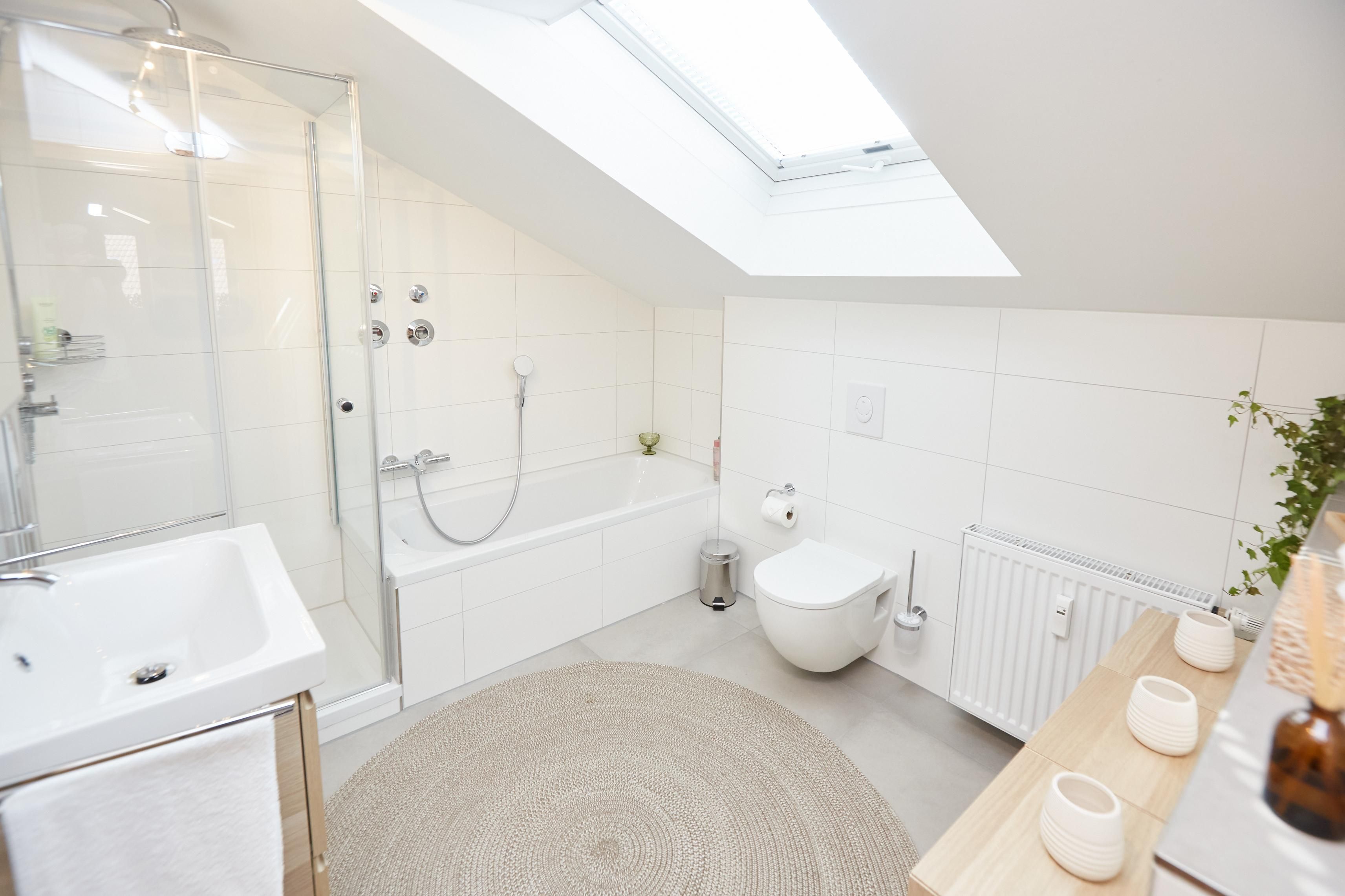Im Bad findest Du eine Badewanne, Dusche und ein WC, sowie ein separates WC.