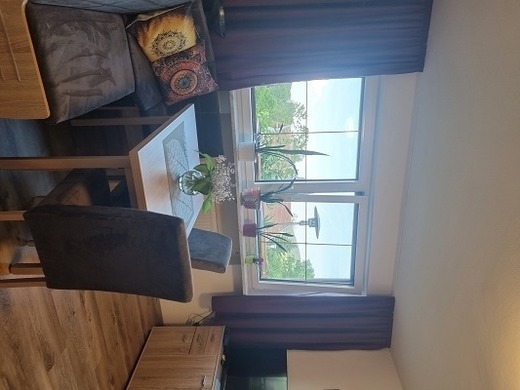 Die Ferienwohnung misst 44 qm und beinhaltet eine Wohnküche,