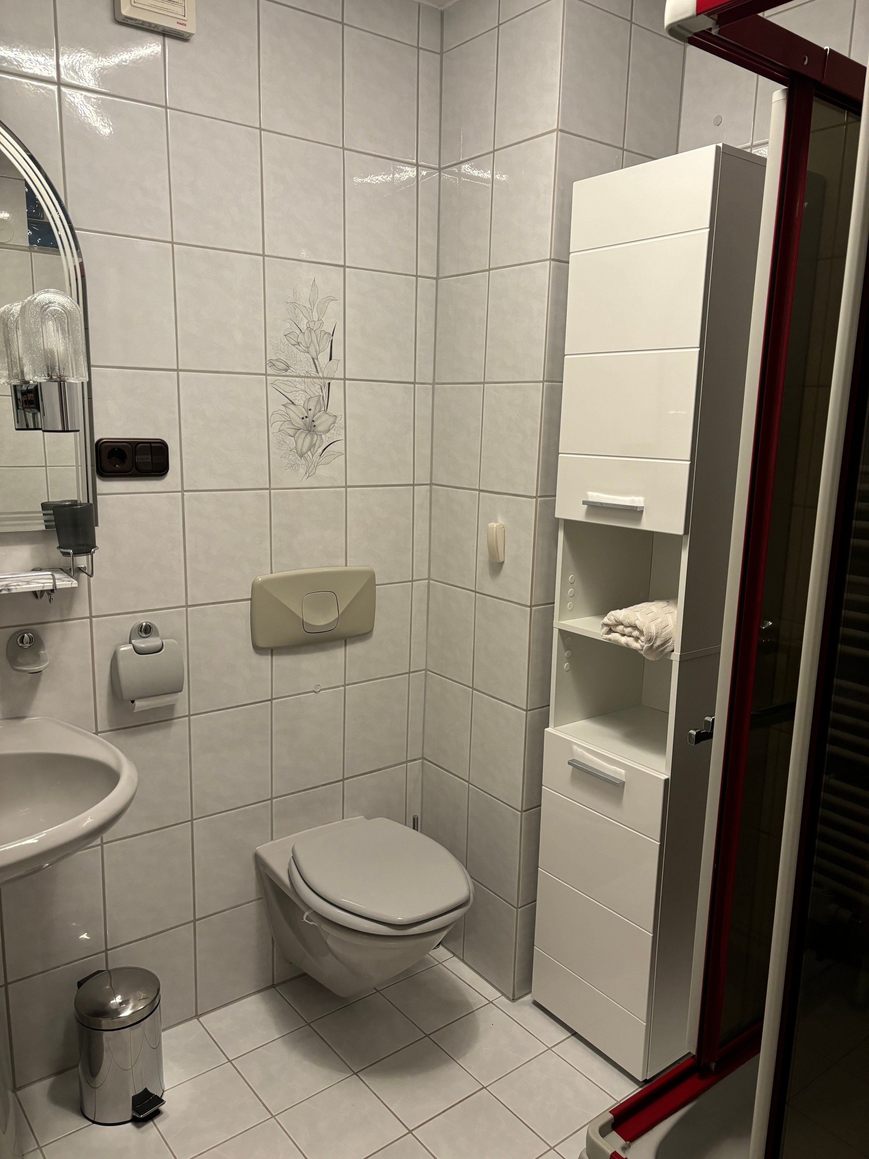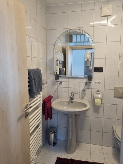 Sie befindet sich in unserem Haus im 1. Stock und hat einen eigenen