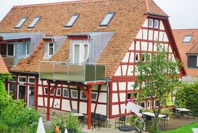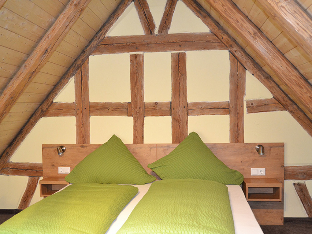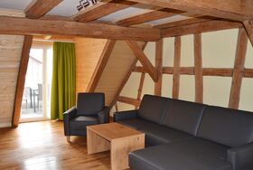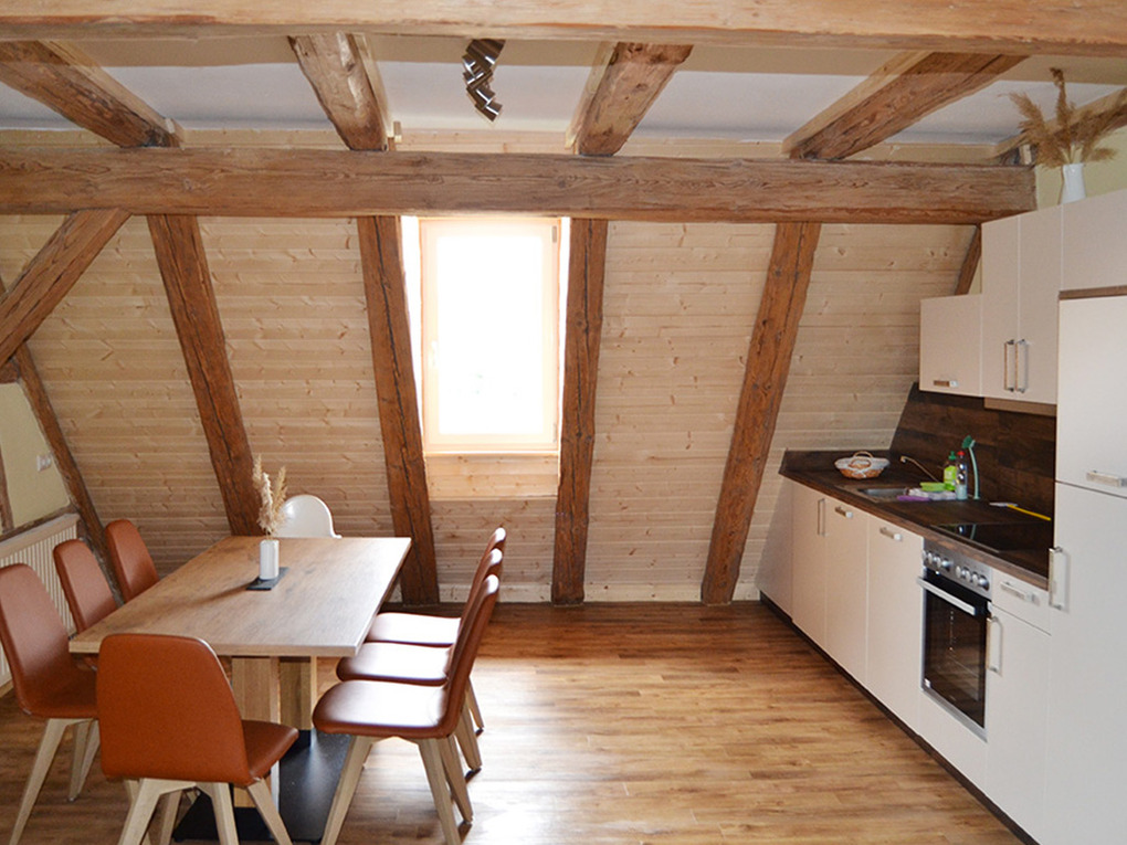 Die Wohnung Kleebock befindet sich im ersten Stock unserer circa zweihundert Jahre alten historischen Scheune. Auch hier übermittelt das Fachwerkambiente einen ganz besonderen, einladenden Charme. Ausgestattet mit modernen Möbeln garantiert die Wohnung einen angenehmen Aufenthalt. Zum draußen Sitzen und Sonnenbaden lädt der Sonnenbalkon ein, welcher direkt an den Wohn- und Essbereich angeschlossen ist.