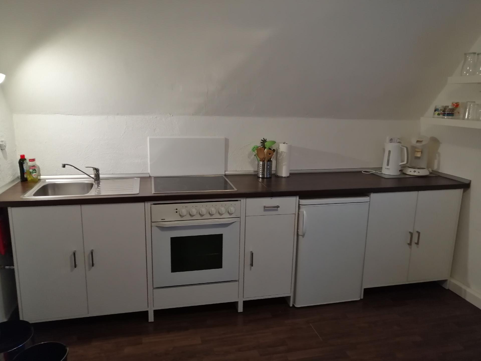 Kochen: Backofen; Ceranherd; Elektroherd; Gefrierfach; Kaffeepadmaschine; Kühlschrank; Toaster; Wasserkocher