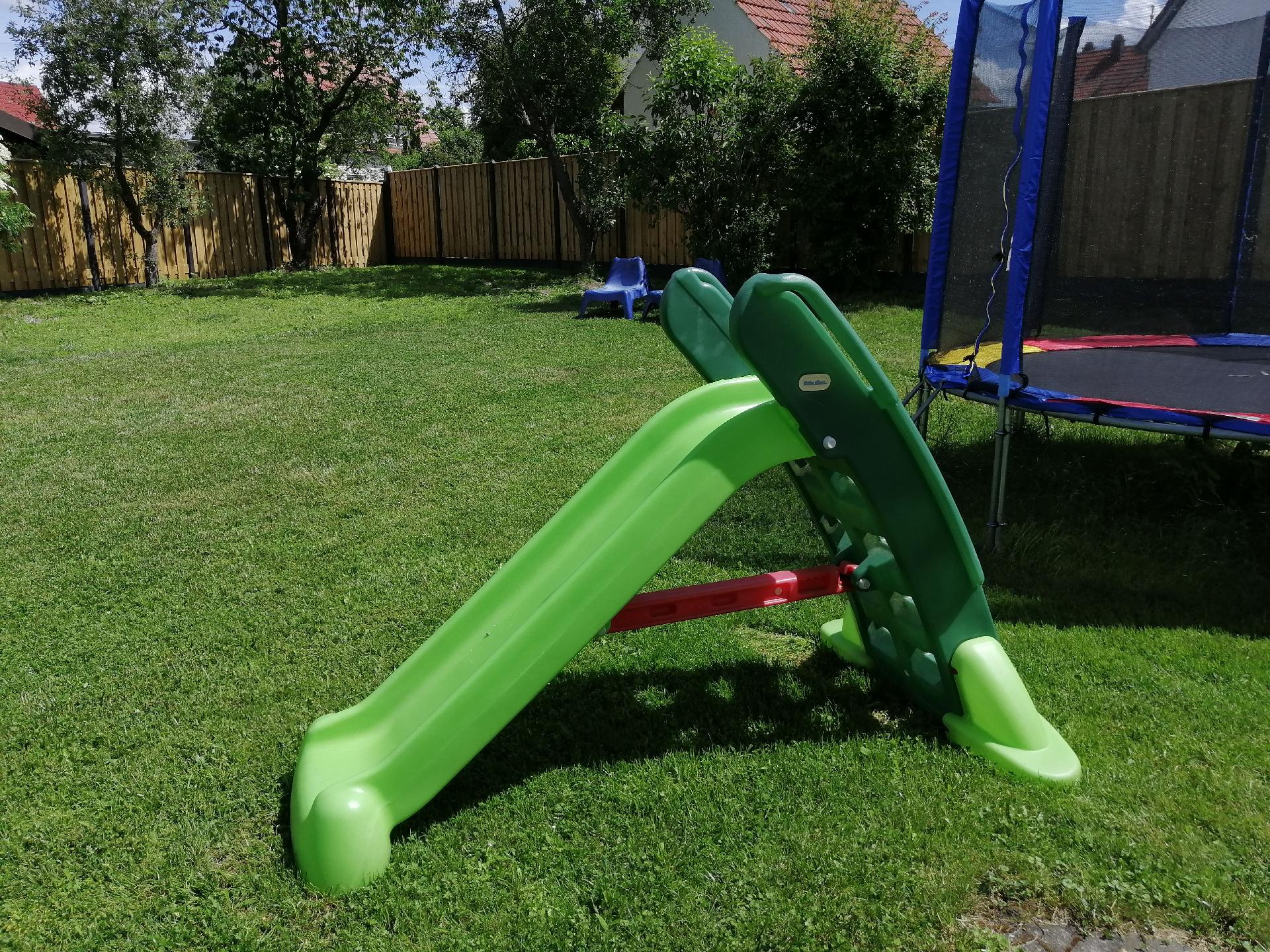 Unsere Wohnung 5 (Dachgeschosswohnung) hat 1 Schlafzimmer und ein kleines Wohnzimmer mit Sofa-Ausziehbett mit jeweils einem Flat-TV, eine Wohn-/Essküche sowie ein Badezimmer mit Dusche. Die neue Küche ist komplett ausgestattet. Bettwäsche und Handtücher sind im Preis inbegriffen. Der große Garten hinter dem Haus mit Trampolin und Fußballtoren ist Teil unseres Angebotes. Der überwachte Parkplatz (videoüberwacht) befindet sich auf unserem Privatgrundstück. Kostenloses W-Lan kann im ganzen Haus genutzt werden. Ein Babybett sowie ein Hochstuhl können wir Ihnen gerne zur Verfügung stellen (Bitte informieren Sie uns bei Bedarf). Einkaufsmöglichkeiten wie einen Bäckerei (ca. 300m, auch Sonntags geöffnet) sowie Aldi, Rewe und Drogeriemarkt erreichen Sie in wenigen Gehminuten und sind nur ca. 400m entfernt. Im Stadtzentrum, das Sie ebenfalls bequem zu Fuß erreichen, finden Sie Pizzerien, Gaststätten, Cafés und Bars.