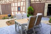 Der Außenbereich des Bauernhauses bietet mit einer einladenden Terrasse den idealen Ort zum Entspannen. Der Garten steht zur gemeinschaftlichen Nutzung bereit und lädt ein, ruhige Momente im Freien zu genießen. Sportbegeisterte Gäste werden sich über die Tischtennisplatte freuen, und Radfahrer schätzen den überdachten und abschließbaren Fahrradabstellplatz sowie die Aufladestation für Elektro-Autos, was den Aufenthalt auch für umweltbewusste Reisende attraktiv gestaltet.