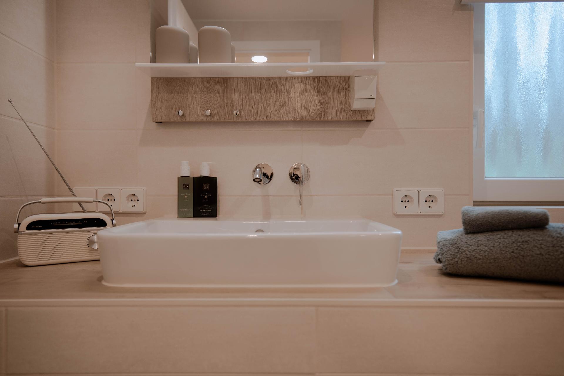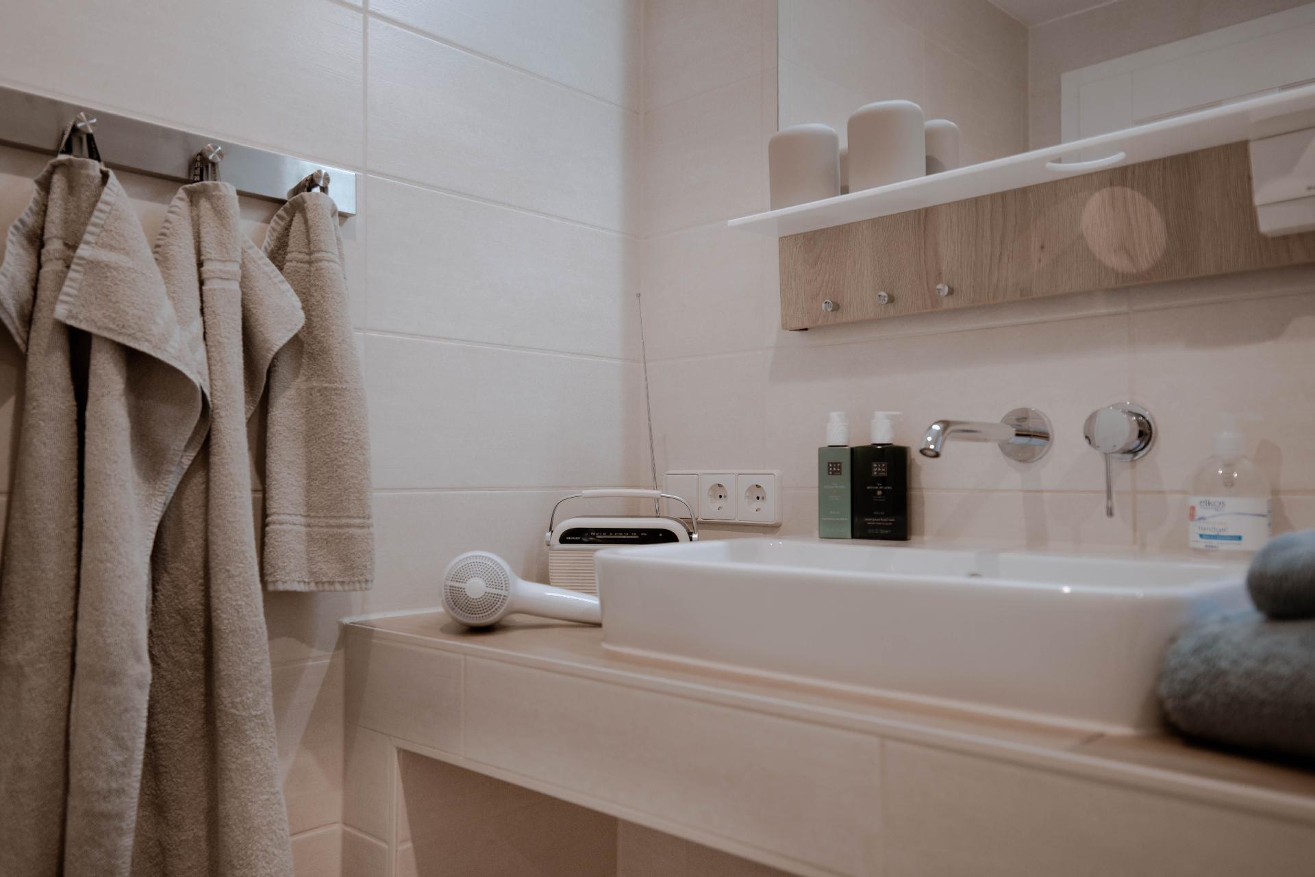 Bad/WC: Dusche; Föhn; Toilette; Waschbecken