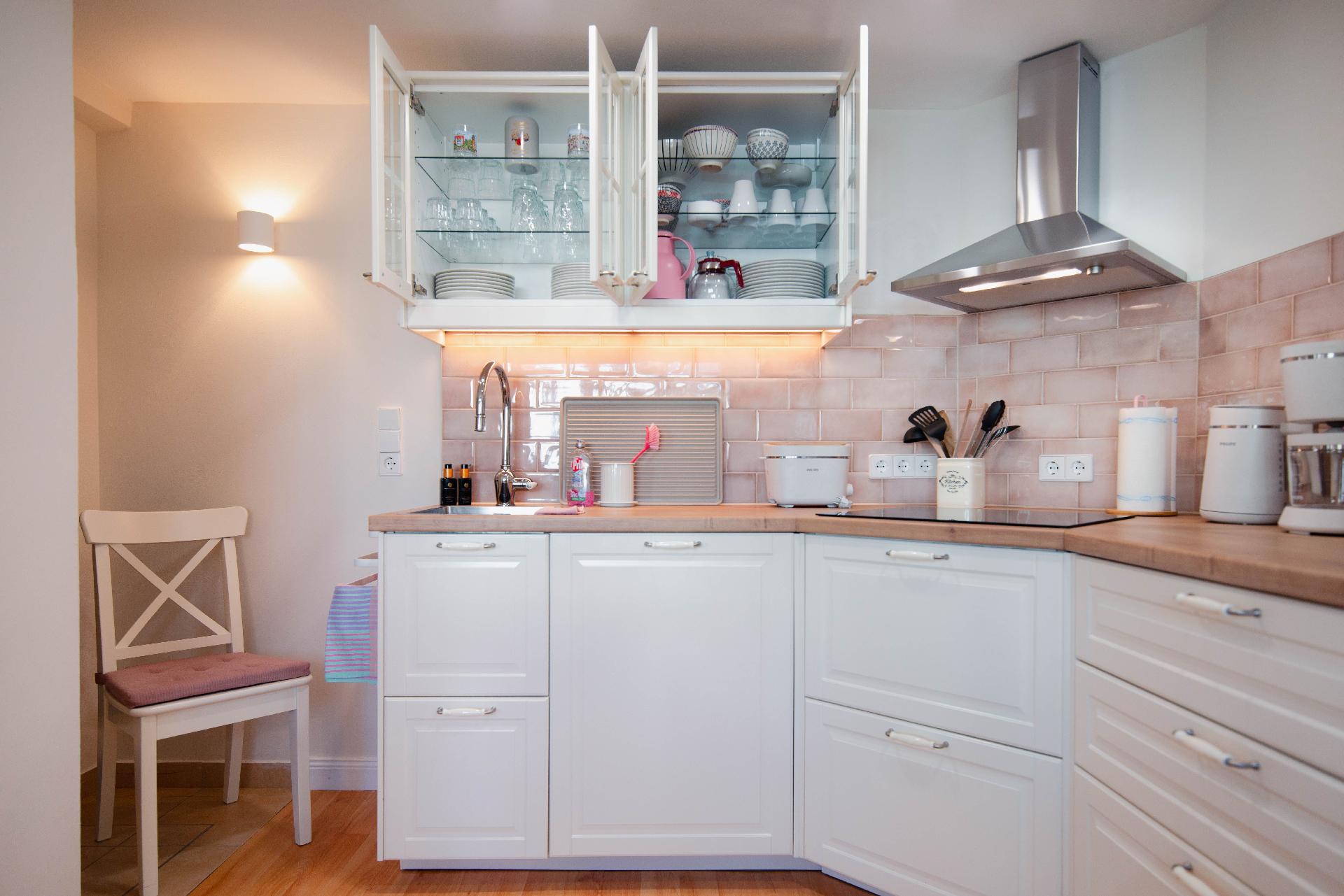 Kochen: Backofen; Espressomaschine; Induktionsherd; Kaffeemaschine; Kaffeepadmaschine; Kühlschrank; Mikrowelle; Spülmaschine; Tiefkühlschrank; Toaster; Wasserkocher