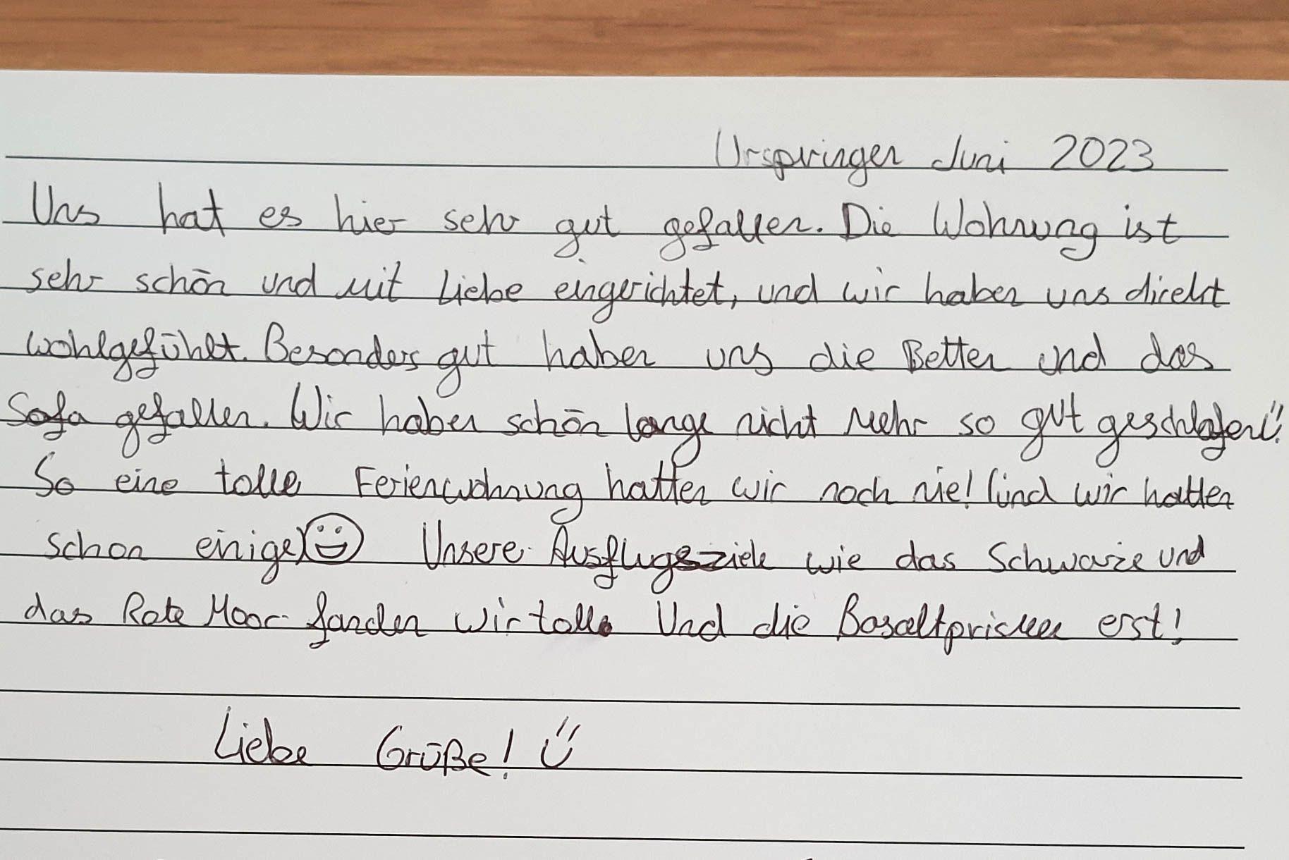 Unsere Ferienunterkunft in Urspringen ist somit die perfekte Wahl für alle, die Ruhe suchen, ohne auf den gewohnten Komfort verzichten zu müssen. Hier kannst du inmitten der Natur neue Energie tanken, die lokale Kultur erleben und die Annehmlichkeiten unseres umweltfreundlich ausgerichteten Bauernhauses genießen. Erlebe einen wirklich erholsamen Aufenthalt in der Rhön. Für Fragen stehen wir dir selbstverständlich jederzeit zur Verfügung.