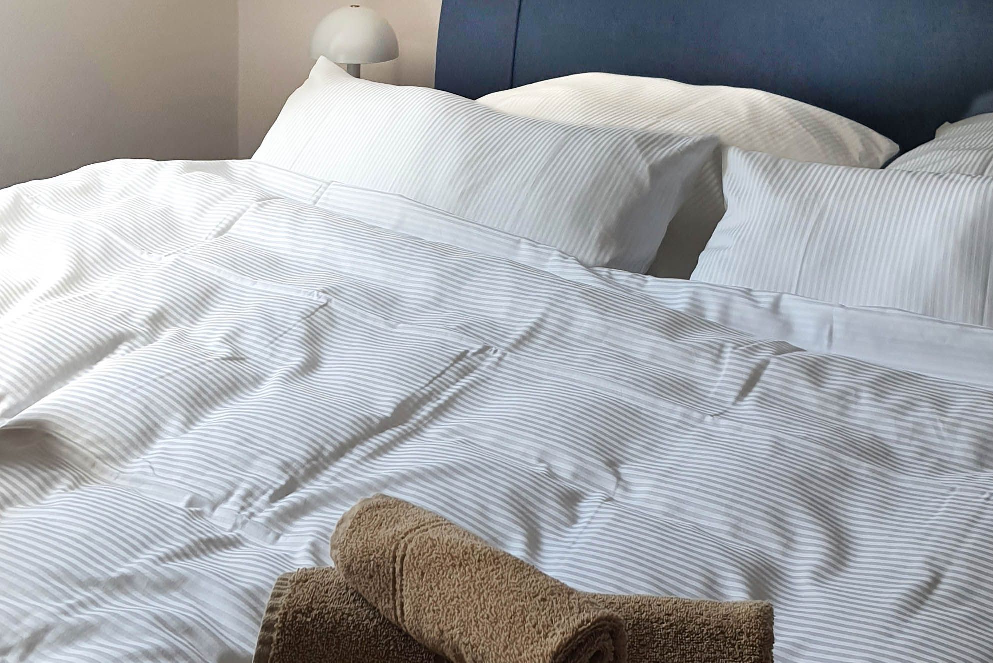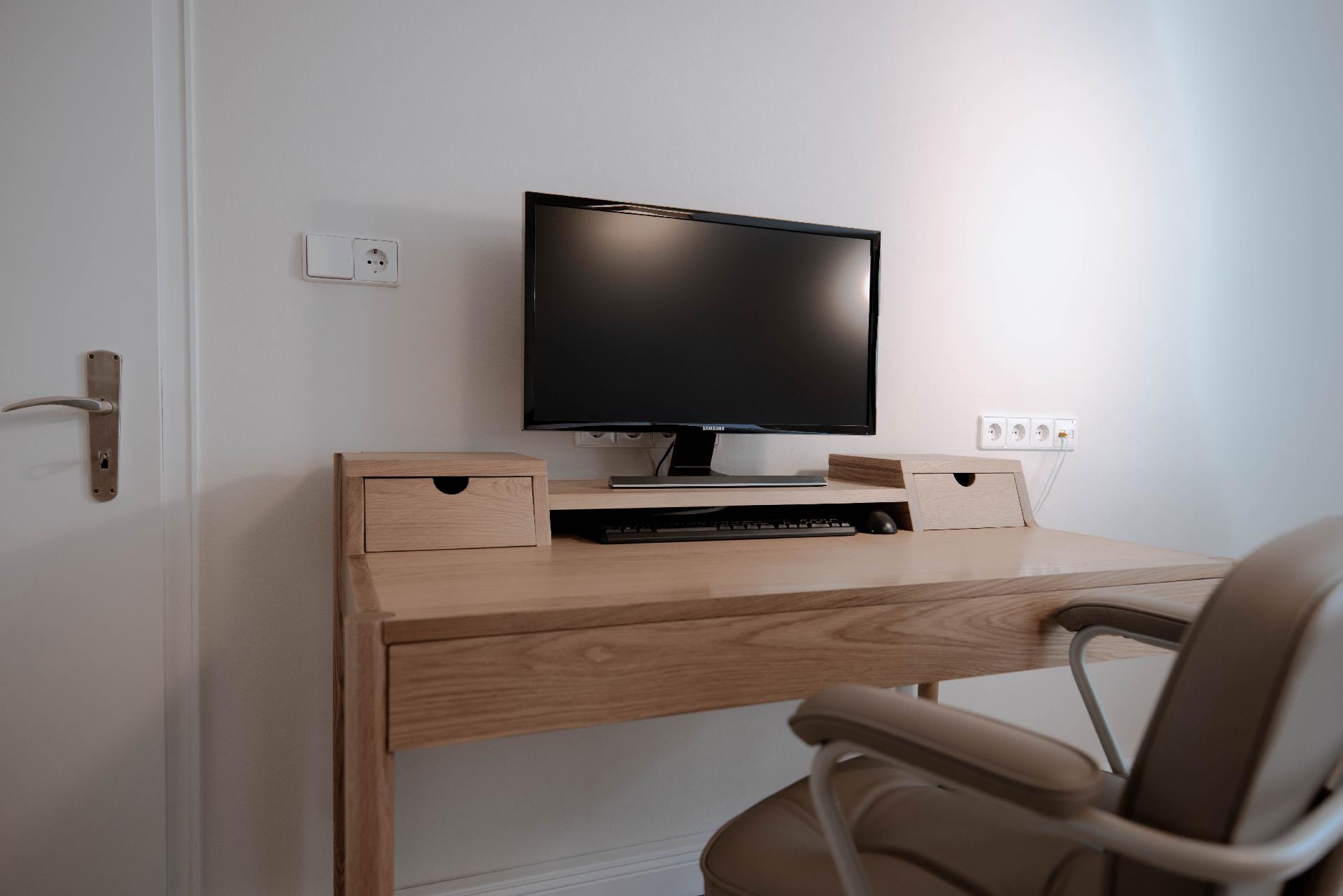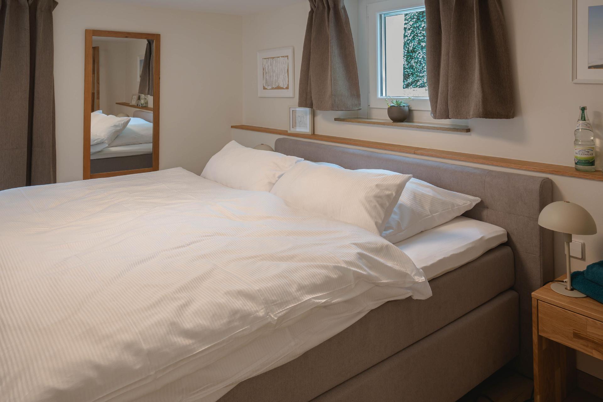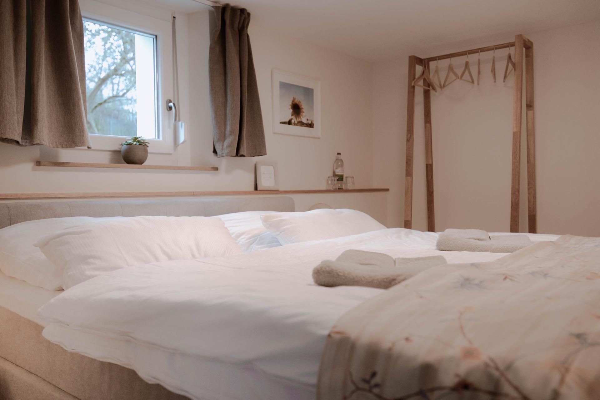 Im Inneren des Hauses erwartet dich eine praktische und bedarfsgerechte Einrichtung. Zwei Schlafzimmer mit abdunkelbaren Fenstern und gemütlichen Boxspringbetten sorgen für einen erholsamen Schlaf. Eine gut ausgestattete Küche mit Induktionsherd, einer Filter- und Pads-Kaffeemaschine, Wasserkocher, Toaster, Handrührgerät und Spülmaschine erleichtert die Selbstversorgung und macht deinen Aufenthalt angenehm. Zum Entspannen am Abend steht dir ein Smart-TV zur Verfügung, während die Waschmaschine und der Wäschetrockner für weitere Annehmlichkeiten sorgen.
