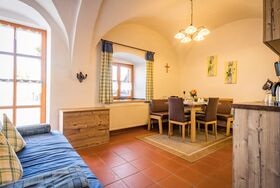 Die Wohnung befindet sich im Erdgeschoss und bietet 38qm Wohnfläche mit romantischem Kreuzgewölbe.
