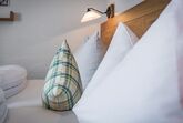 Das Schlafzimmer ist mit einem Doppelbett (180x200cm) ausgestattet. Auf Wunsch lässt sich dieses auch teilen, sodass zwei Einzelbetten entstehen. Auf Anfrage ist für weitere Personen eine Aufbettung auf der Schlafcouch in der Wohnküche möglich.