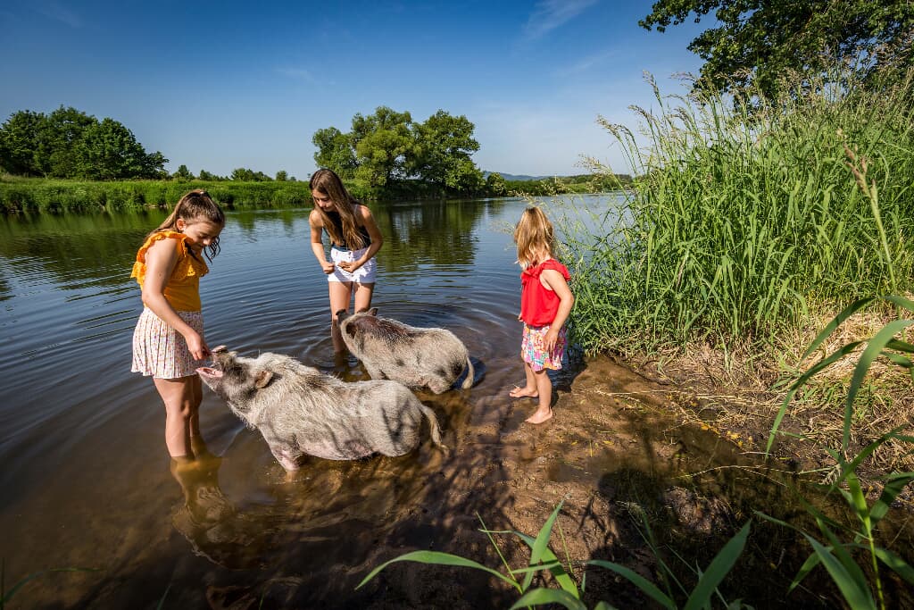 Aber auch die Großen kommen nicht zu kurz: Knusprige Schweinshaxen essen oder Steinofenpizza backen, Strandkörbe, Leihfahrräder, eine Tischtennisplatte, Angelmöglichkeiten, tolle Wanderwege und vieles mehr!