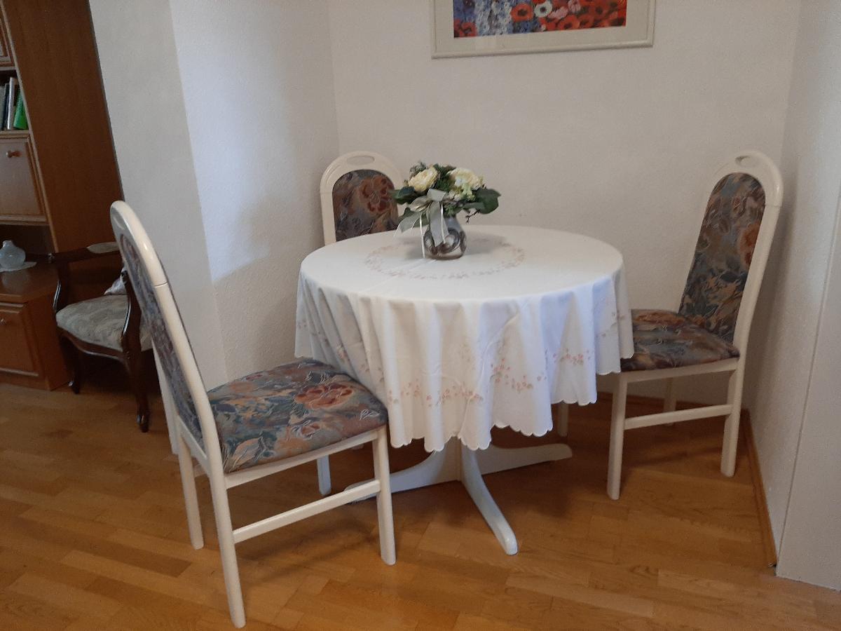 Die geräumige Essecke verfügt über 4 Sitzplätze und eine Mikrowelle.