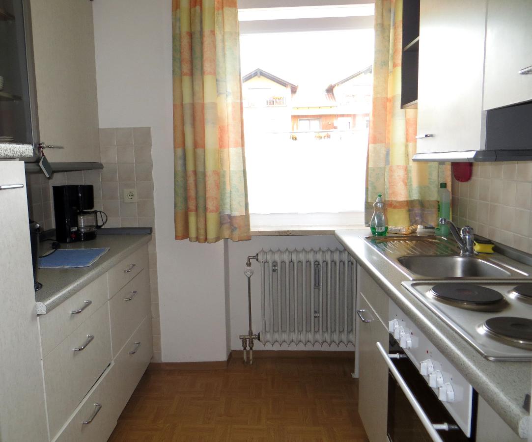 Die komplett ausgestattete Küche verfügt über Kühlschrank, Herd mit Backofen, Wasserkocher, Kaffeemaschine und Toaster.