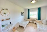 Zwei der drei Schlafzimmer verfügen über ein Doppelbett, einen Fernseher mit sämtlichen Streaming-Programmen sowie der Möglichkeit sich z.B. mit Ihrem Netflix-Zugang einzuloggen. Zudem verfügen diese Zimmer über eine kleine Sitzecke, welche in einem der Zimmer zu einer weiteren Schlafmöglichkeit umfunktioniert werden kann. Im dritten, kleineren Schlafzimmer befinden sich zwei Einzelbetten, die jedoch problemlos zum Doppelbett zusammengestellt werden können. Alle drei Schlafzimmer verfügen über ein Waschbecken.