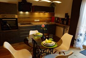 Die 55 m2 große Wohnung befindet sich im ersten Obergeschoss unseres Hauses. Sie bietet Platz für 2 Personen und alles, was Sie für einen entspannten Urlaub benötigen. Es erwartet Sie eine moderne, voll eingerichtete Küchenzeile mit Backofen, Mikrowelle, Toaster, Spülmaschine, Kaffeemaschine und Kühlschrank mit 3* Gefrierfach.