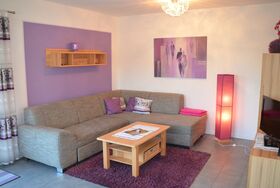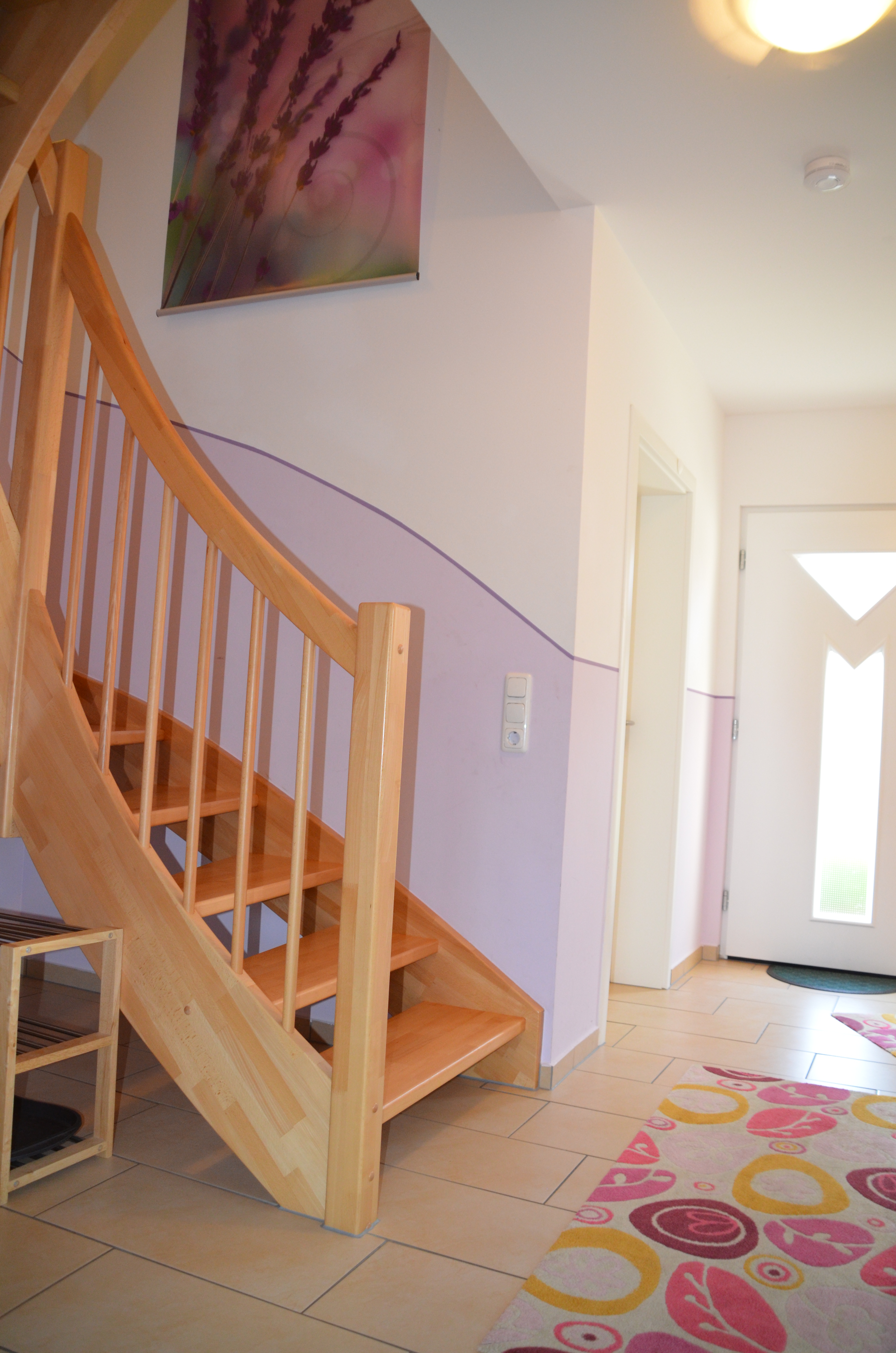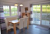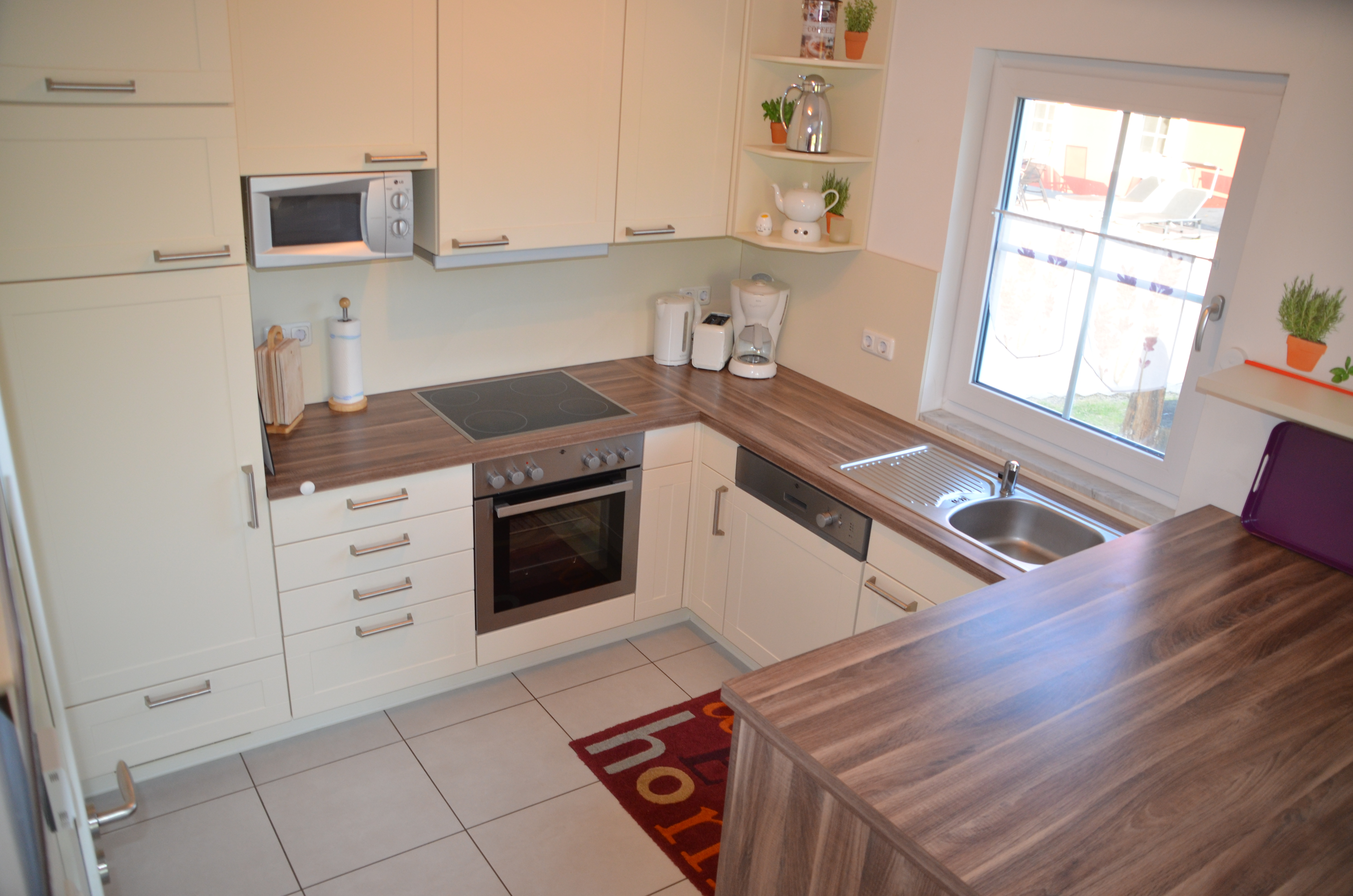 Haus Anna - ist eine Hälfte eines Doppel-Hauses. Diese ist ebenerdig ausgestattet mit großem Wohn- und Essbereich, der einen Zugang zur eigenen Terrasse hat. Es gibt dort eine großzügige Küchenzeile, mit Spülmaschine, Backofen, Mikrowelle, Kaffeemaschine, Toaster, Wasserkocher etc. Außerdem gibt es im Erdgeschoss noch ein extra WC und einen Abstellraum mit Waschmaschine.