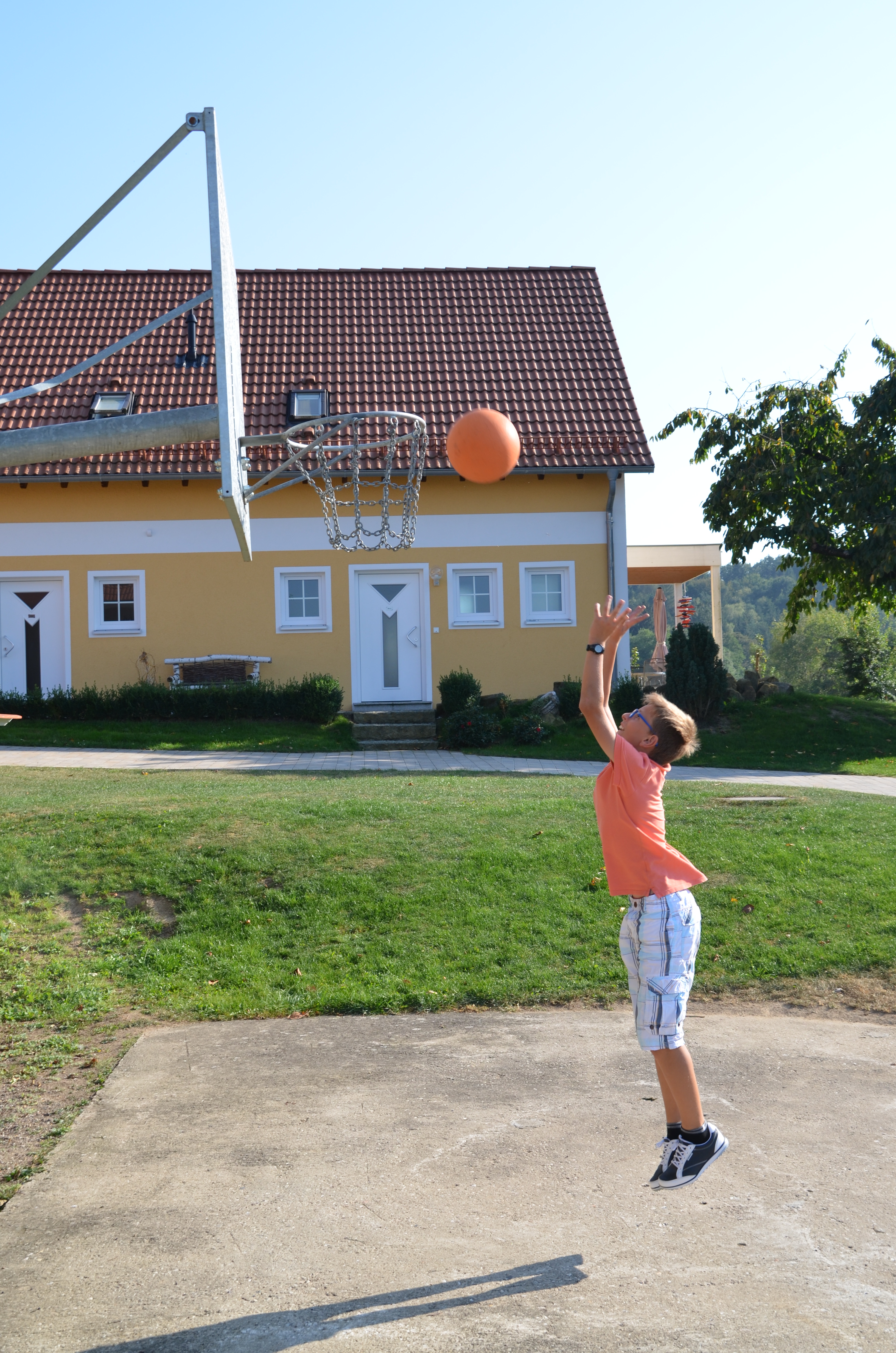 Spielplatz und Basketballkorb direkt auf dem Grundstück und einige Brett- und Kartenspiele, sowie Malstifte, gibt es in den Häusern auch :-)