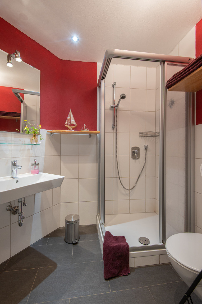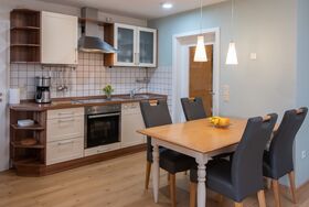 Ferienwohnung Nr. 3 im Erdgeschoß mit 62 qm wurde 2022 renoviert, ist mit 4 Sternen des DTV bewertetund bietet Platz für 4 - 5 Personen. Elternschlafzimmer mit 1 Doppelbett ( 200x200 ) sowie Kindergitterbett. Kinderzimmer mit 2 Einzelbetten (je 90x190). Die komplett ausgestattete Küche mit Geschirrspüler, Kühlschrank inkl. Gefrierfach, Ceranfeld, Backofen, Mikrowelle, Wasserkocher, Eierkocher, Toaster und Kaffeemaschine mit Mahlwerk lässt keine Wünsche offen. Essplatz und Sofa sowie Flachbild -TV mit Kabelanschluß. Terrasse, ideal zum Frühstück in der Morgensonne..