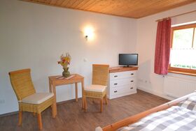 Die neuen Komfortbetten sorgen für einen erholsamen Schlaf. Eine bequeme Sitzmöglichkeit lädt zum Verweilen ein. Beim Blick aus dem Fenster sehen Sie grüne Natur, ein wahrer Ruhepol für die Augen.