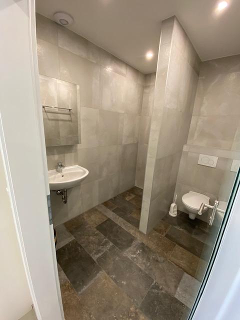 Bad mit Dusche und WC, Fön, Spiegelschrank