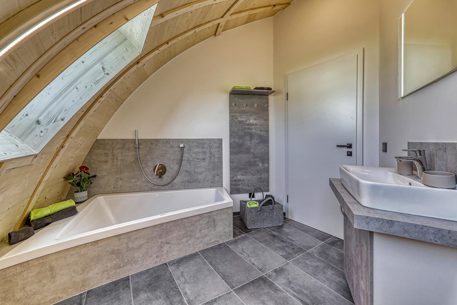 Vergessen Sie alles, was Sie bisher über Ferienhäuser gehört und gedacht haben. Der PANORAMA-SKYDOME stellt hierzulande ein echtes Unikat dar. Bereits sein Name gibt ein eindeutiges Statement ab. Denn durch die besondere Bauweise einer Holzkuppel und großen Panoramafenstern – über 2 Geschosse verlaufend – grenzt er sich deutlich von der ortsüblichen Architektur ab. Ein herrliches Raumklima, ein einmaliger, großzügiger Koch-, Ess- und Wohnbereich, eine atemberaubende Raumhöhe sowie eine individuelle, moderne Ausstattung unterstreichen die Vorzüge dieses außergewöhnlichen Hauses.