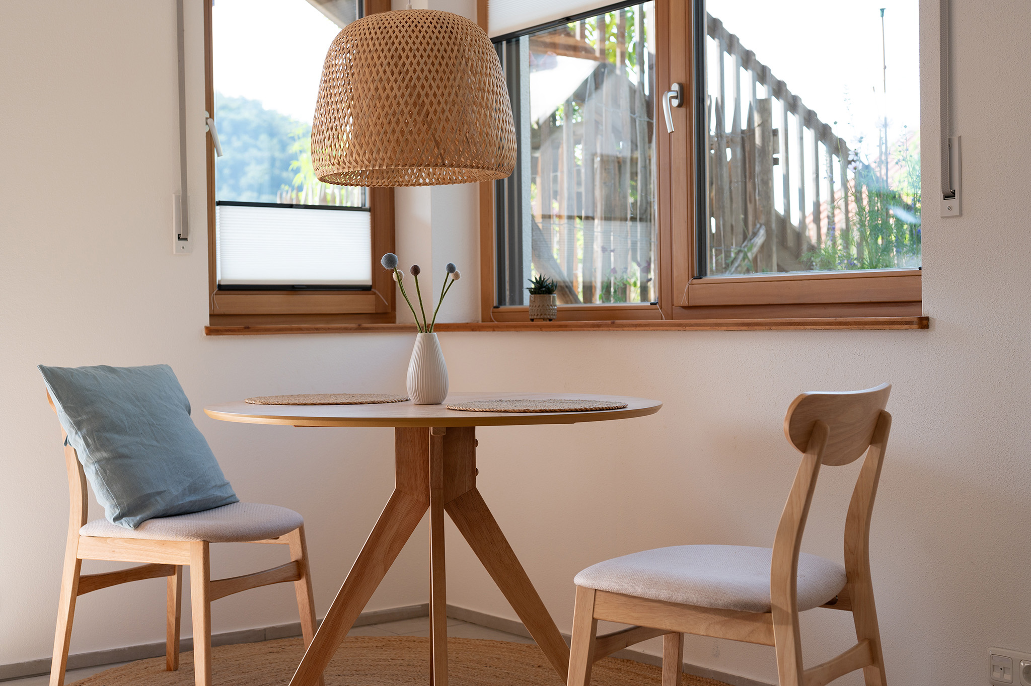 Unsere Ferienwohnung in ruhiger Waldrandlage bietet auf 30 Quadratmetern Platz für 1-2 Personen (und ein Kind bis 6 Jahre) und ist mit viel Liebe zum Detail gemütlich eingerichtet.