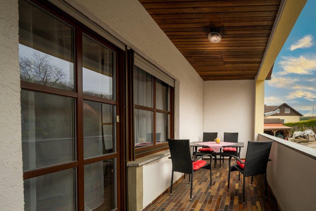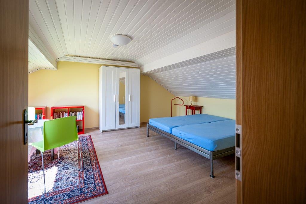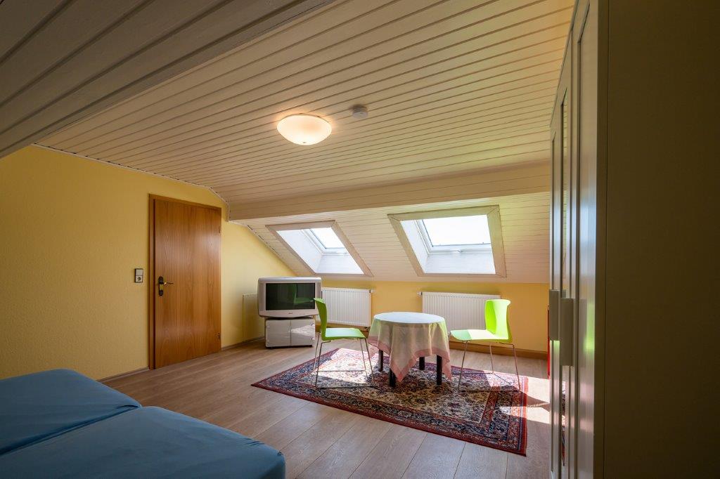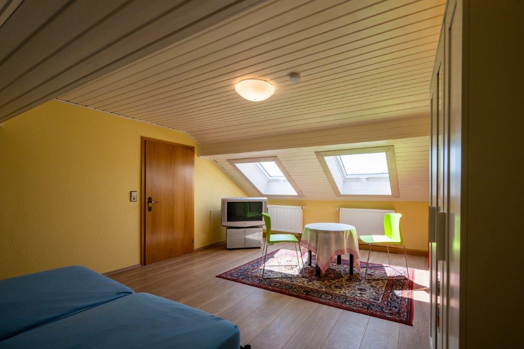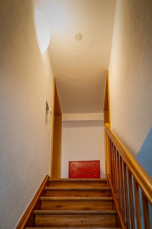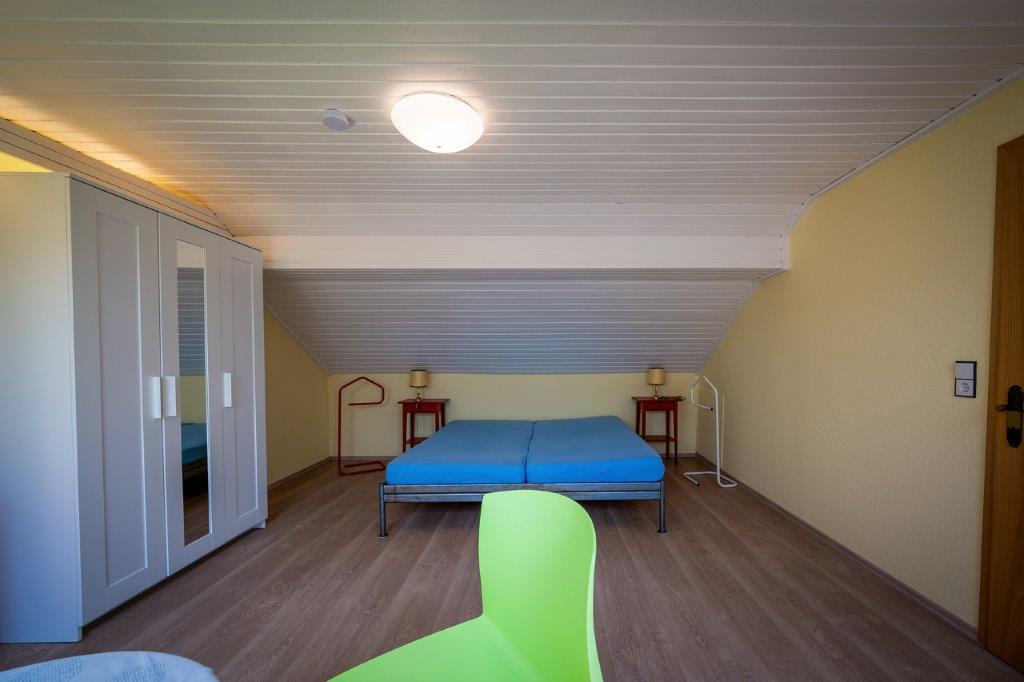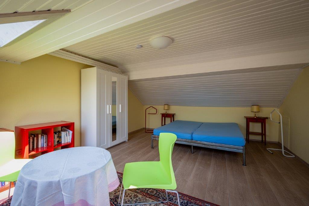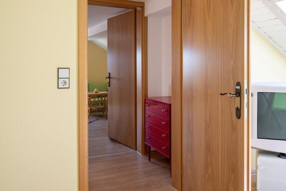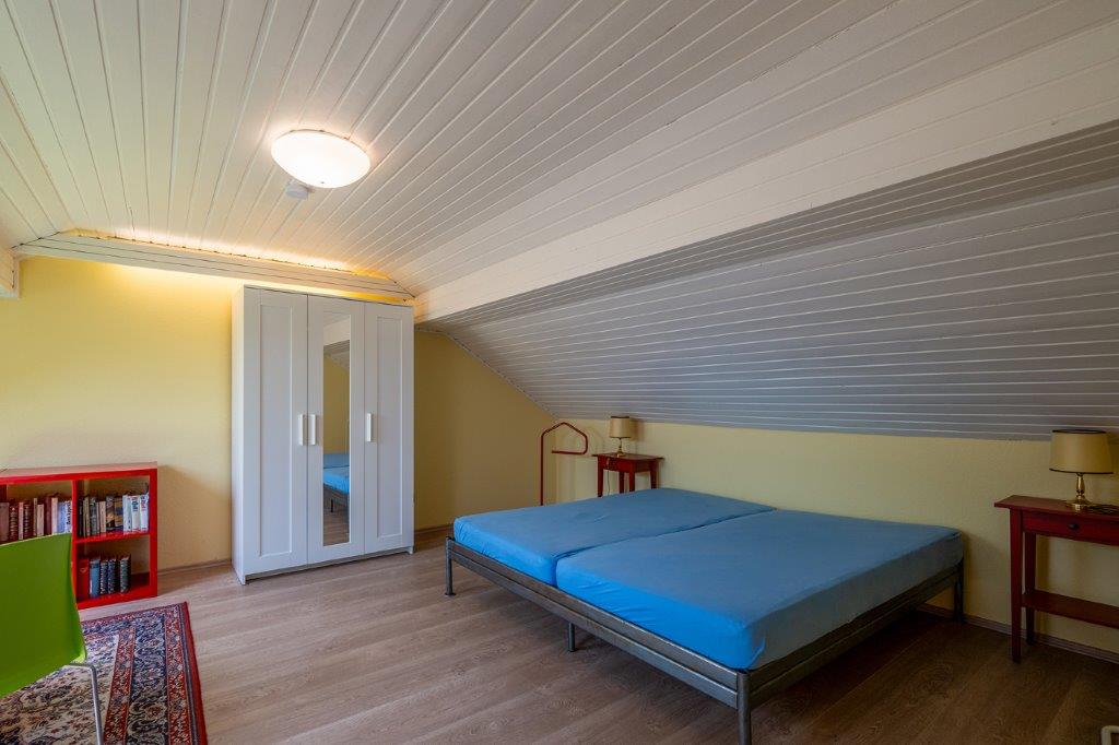 Die Ferienwohnung bietet ein Schlafzimmer mit großem Doppelbett im 1. OG, 2 weitere Schlafzimmer (ein Zimmer mit großem Doppelbett (1,80 x 2,00 m) sowie ein kleines Zimmer mit einem Bett (1,40 x 2,00 m) befinden sich im Dachgeschoss. Der großzügige Wohn- und Essbereich hat einen Südbalkon und eine große nach Westen ausgerichtete Loggia.