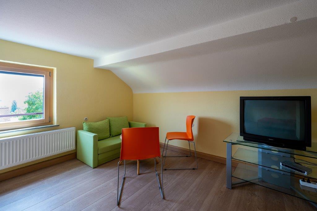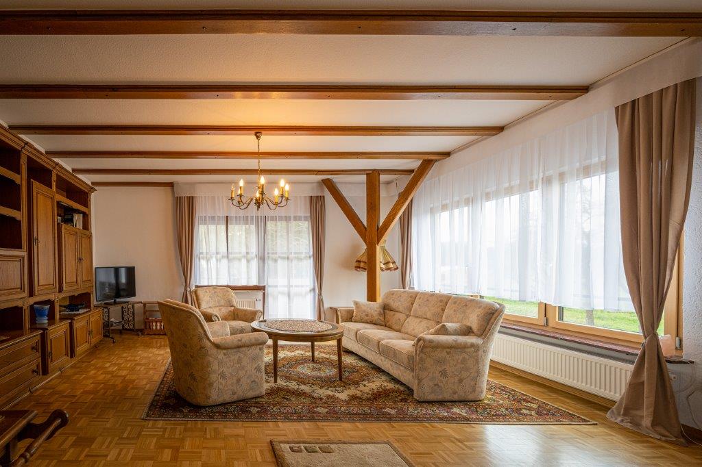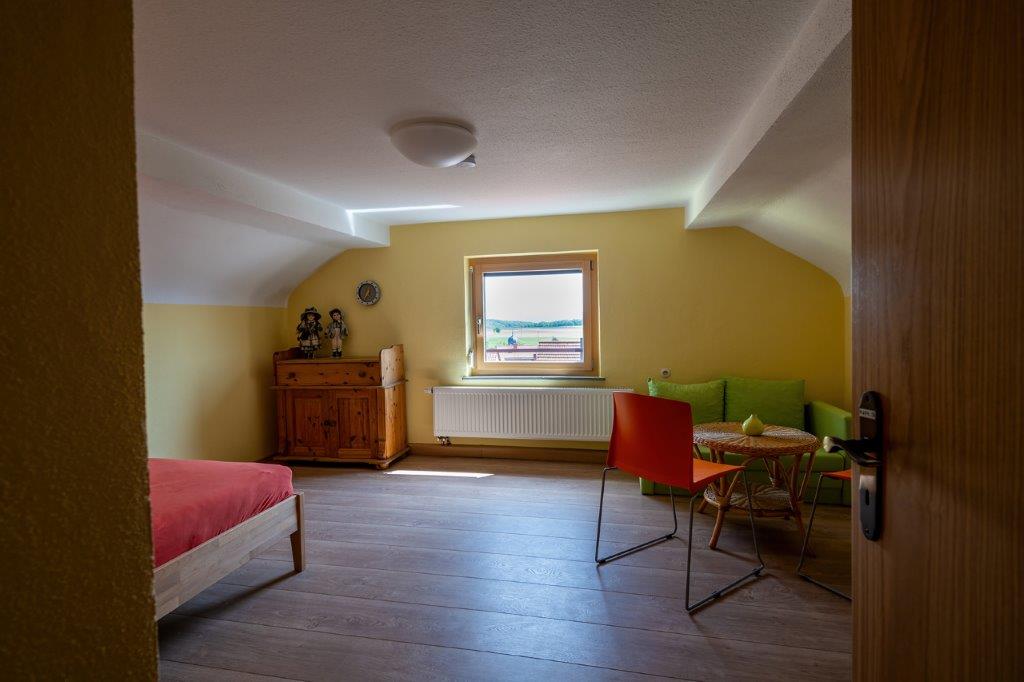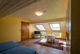 Große sonnige Ferienwohnung über 2 Stockwerke: im 1.OG und im DG, in ländlicher Lage mit direktem Zugang zur Natur und zu wunderschönen Wander- und Radwegen durch den Wald. Nichtraucherwohnung
