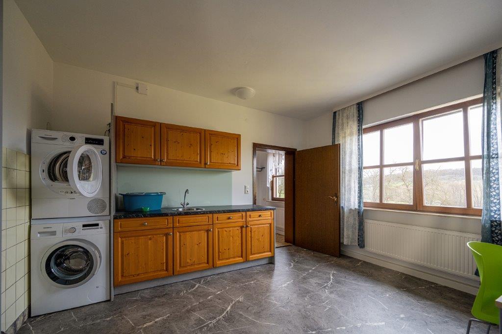 Weiter ist ein Hauswirtschaftsraum mit Waschmaschine und Wäschetrockner vorhanden.